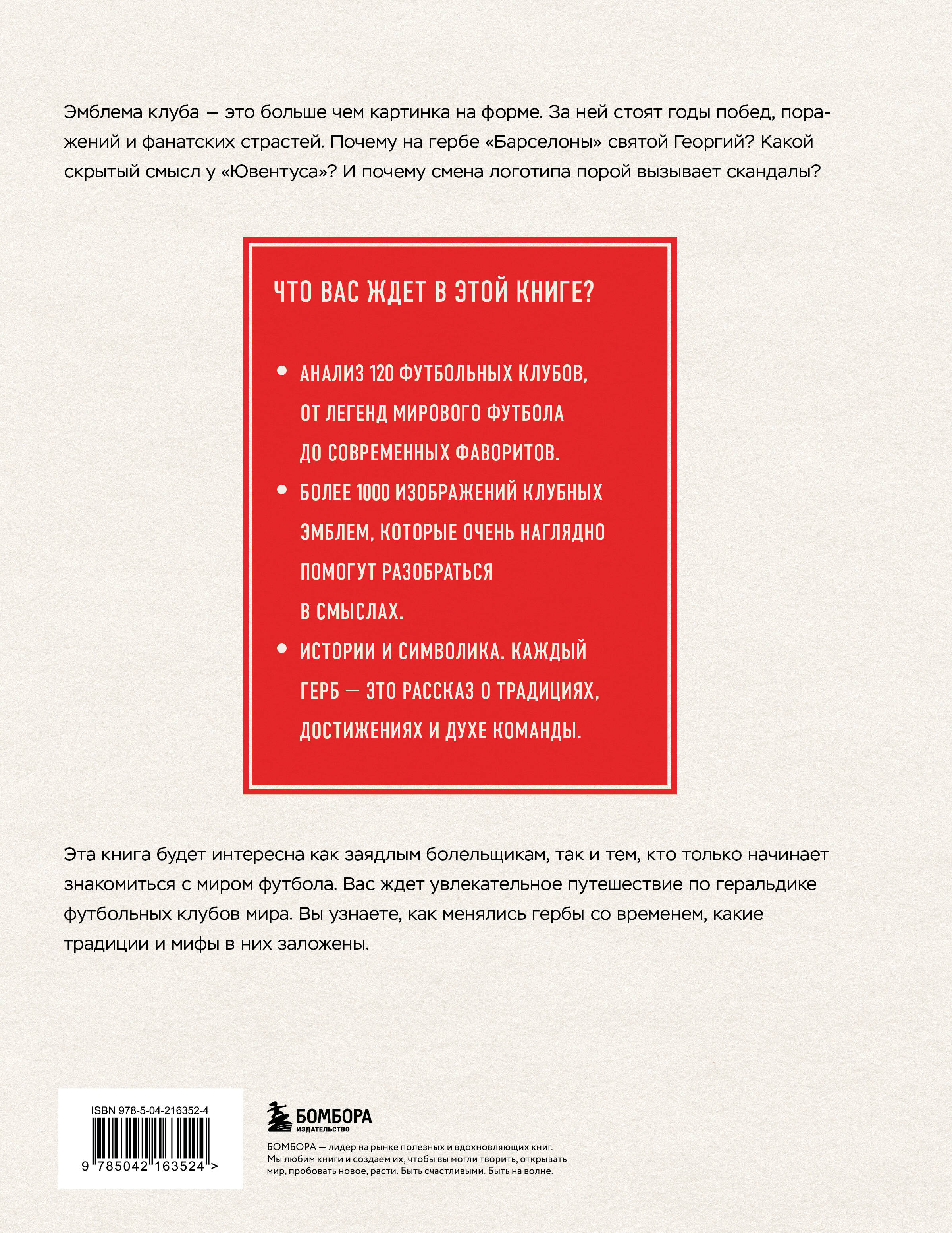 Эмблема клуба - это больше, чем картинка на форме. За ней стоят годы побед, поражений и фанатских страстей. Почему на гербе «Барселоны» Святой Георгий? Какой скрытый смысл у «Ювентуса»? И почему смена логотипа порой вызывает скандалы? Что вас ждет в этой книге? • Анализ 120 футбольных клубов, от легенд мирового футбола до современных фаворитов. • Более 1000 изображений клубных эмблем, которые помогут вам очень наглядно разобраться в смыслах. • Истории и символика. Каждый герб - это рассказ о традициях, достижениях и духе команды. Эта книга будет интересна как заядлым болельщикам, так и тем, кто только начинает знакомиться с миром футбола. Вас ждет увлекательное путешествие по геральдике футбольных клубов мира. Вы узнаете, как менялись гербы со временем, какие традиции и мифы в них заложены.| Издательство | ООО "Издательство "Эксмо" |