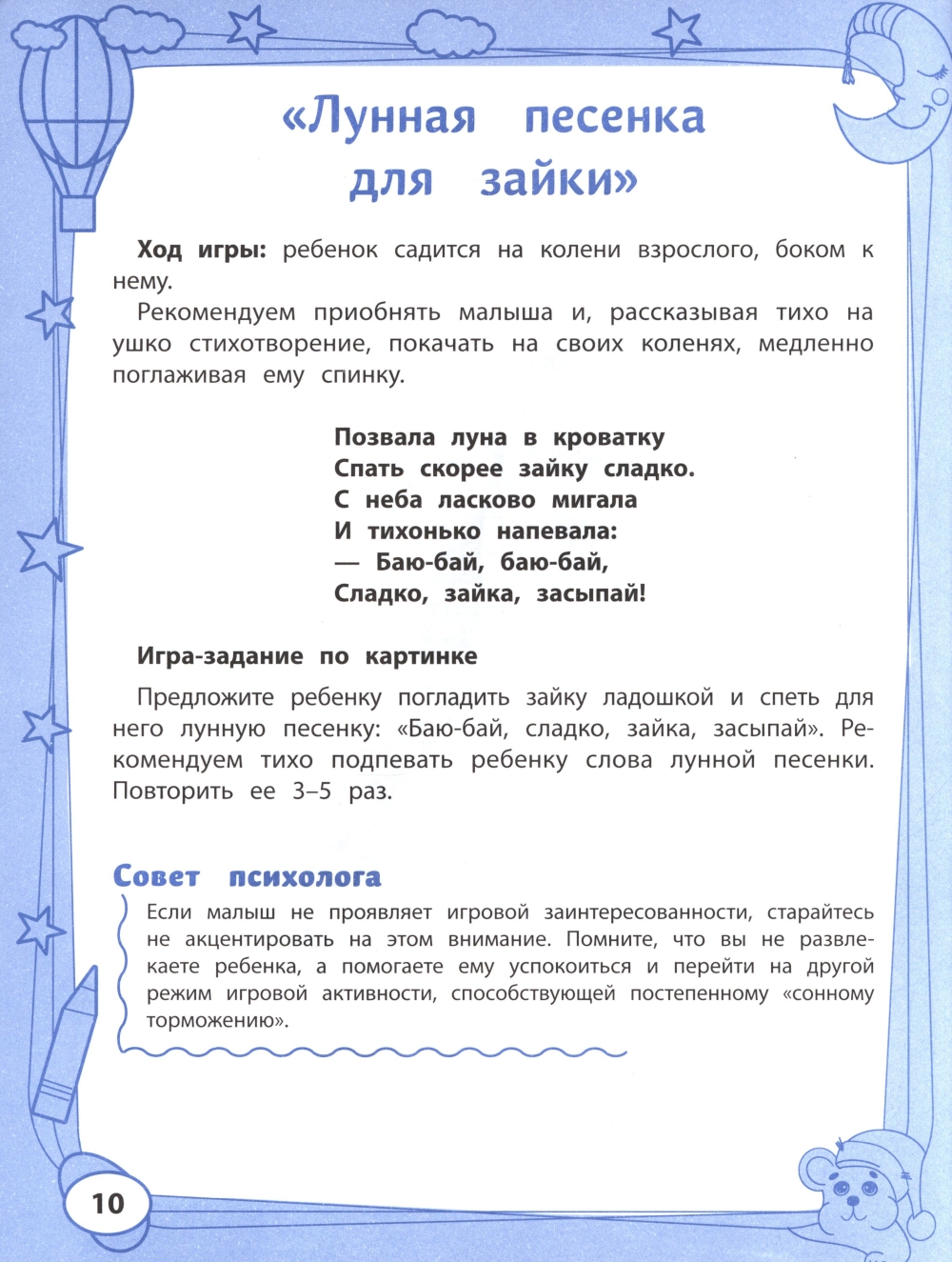 Подготовка ко сну - один из важнейших моментов в режиме дня ребенка. Чтобы обеспечить малышу здоровый и полноценный сон, родителям необходимо сформировать у него предпосылки «сонного торможения». Специальные игровые ситуации, предлагаемые в этой книге, помогут родителям мягко переключить внимание ребенка с шумных и активных занятий на тихие и спокойные игровые действия. В книге представлен рассчитанный на шесть недель курс телесно ориентированных и психомоторных игр, который обеспечивает постепенное формирование у малыша полезной привычки замедления своей активности и желания идти спать. Книга адресована родителям и специалистам по детскому развитию. Для детей 2-4 лет.| Издательство | Феникс |