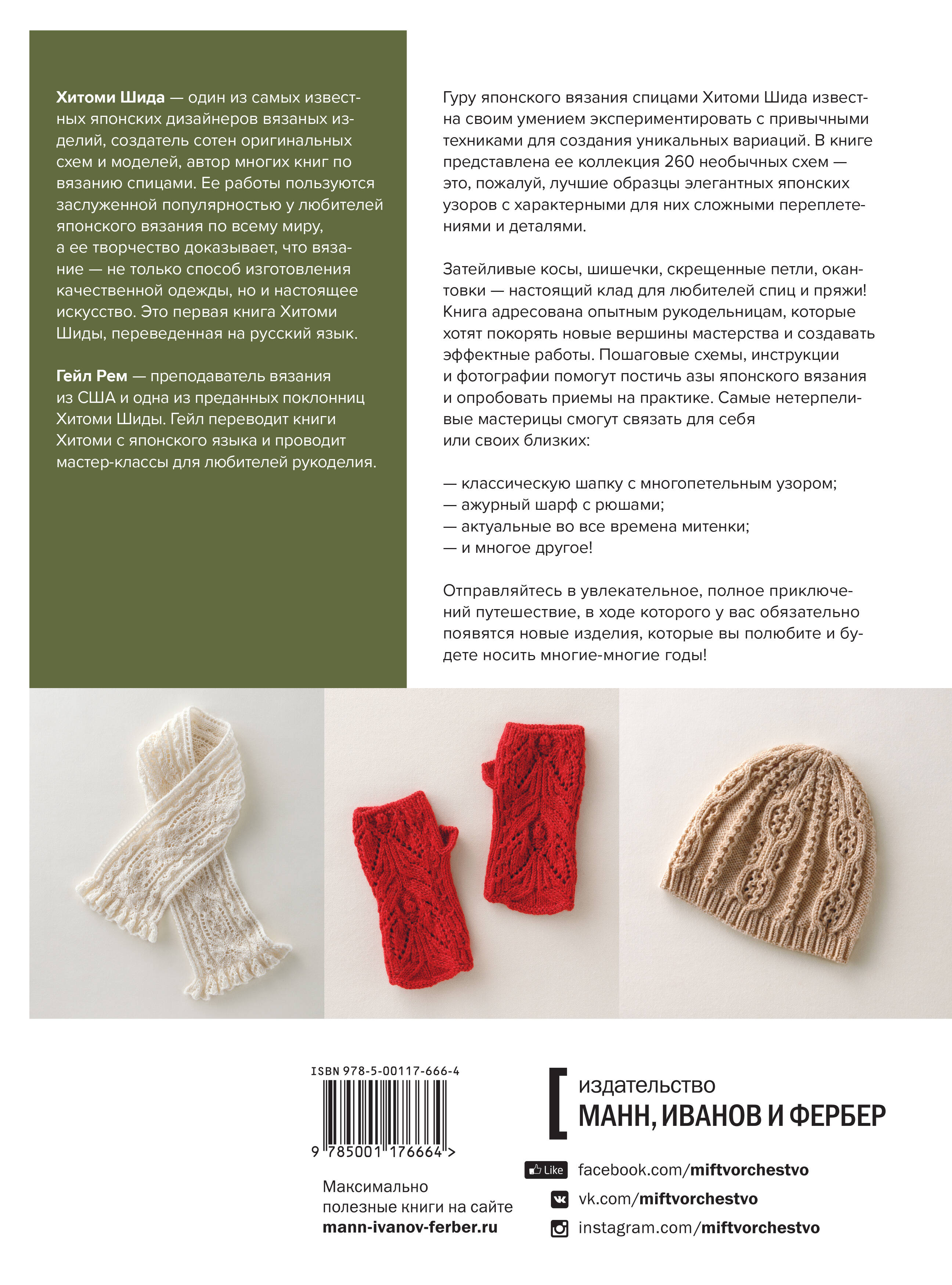 Японский дизайнер вязаных изделий Хитоми Шида делится своими идеями узоров. В книге вы найдете лучшие образцы японских узоров для вязания спицами и пошаговые схемы. Затейливые косы, шишечки, скрещенные петли, ракушки, окантовки - и не только!| Издательство | Манн, Иванов и Фербер |