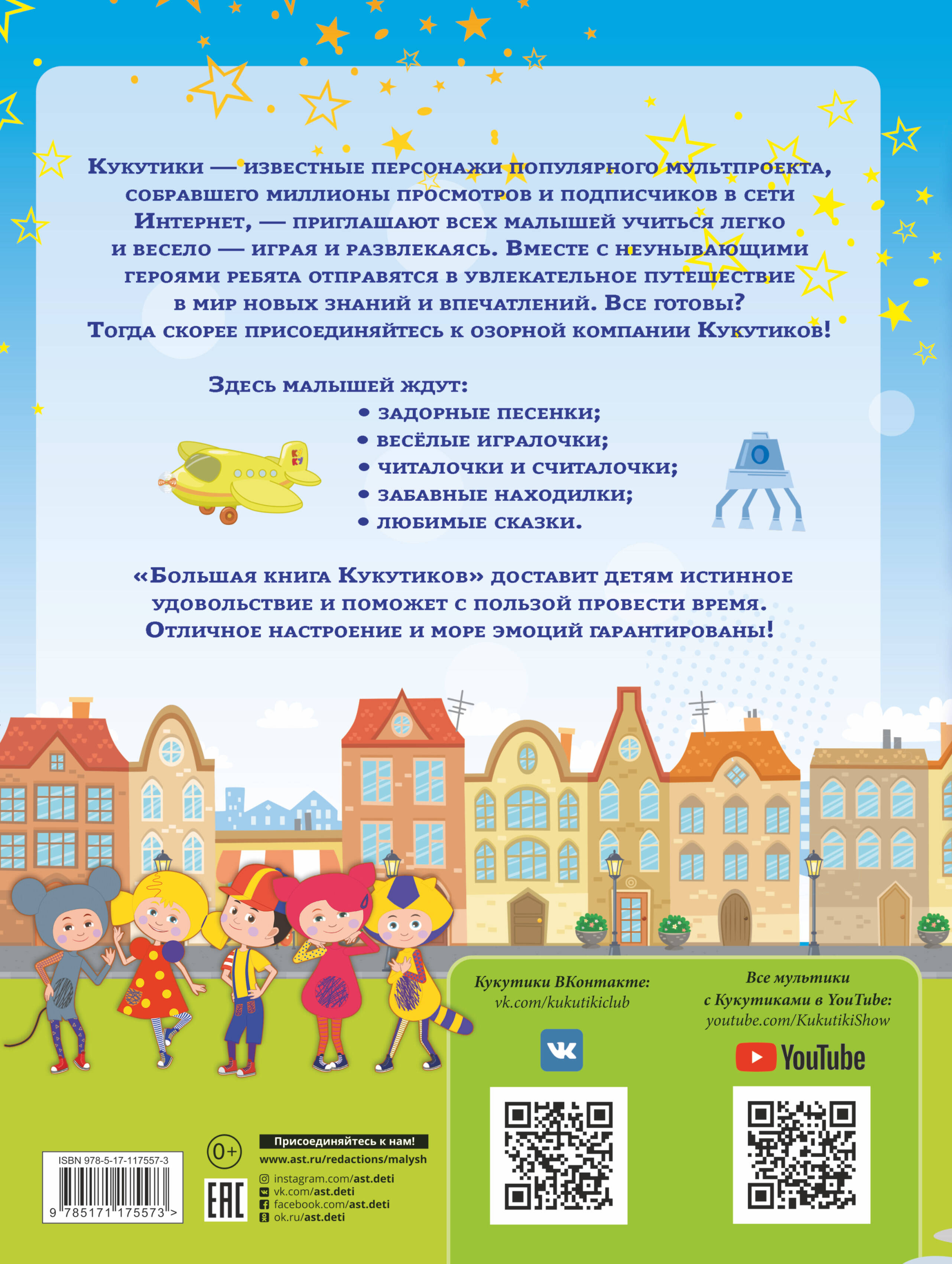 Все дети знают и любят КУКУТИКОВ - героев одноимённого музыкального канала на YouTube, собравшего миллионы просмотров и подписчиков в сети Интернет. Неунывающий Мышонок, милая Свинка, жизнерадостная Девочка, озорной Мальчик и дружелюбный Енот не дадут ребятам заскучать. Вместе с ними малыши повторят алфавит и счёт, познакомятся с разными животными и птицами, пройдут запутанные лабиринты и решат занимательные задачки. Всё это и многое другое дети найдут на страницах "Большой книги Кукутиков". Для дошкольного возраста.