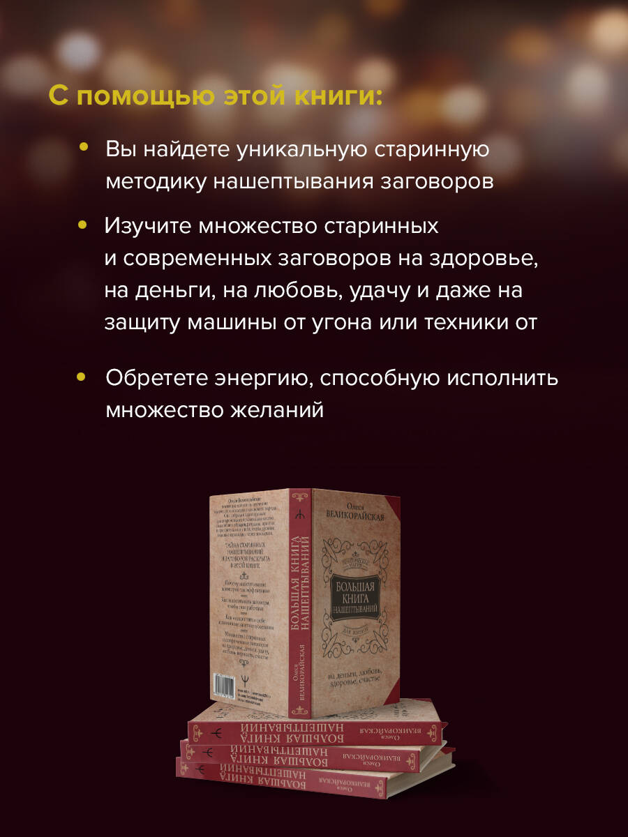 Аннотация: Большая книга нашептываний. На деньги, любовь, здоровье и счастье