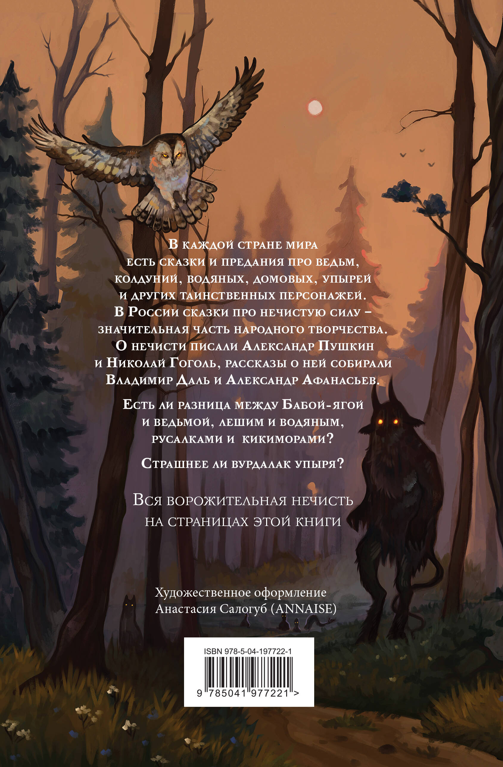 В каждой стране мира есть сказки и предания про ведьм, колдуний, водяных, домовых, упырей и других таинственных персонажей. В России сказки про нечистую силу - значительная часть народного творчества. О нечисти писали Александр Пушкин и Николай Гоголь, рассказы о ней собирали Владимир Даль и Александр Афанасьев. Есть ли разница между Бабой Ягой и ведьмой, лешим и водяным, русалками и кикиморами? Страшнее ли вурдалак упыря? Вся ворожительная нечисть на страницах этой книги.| Издательство | ООО "Издательство "Эксмо" |