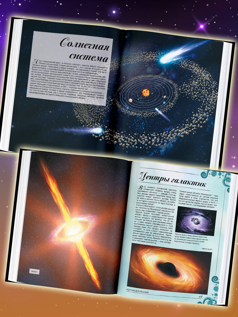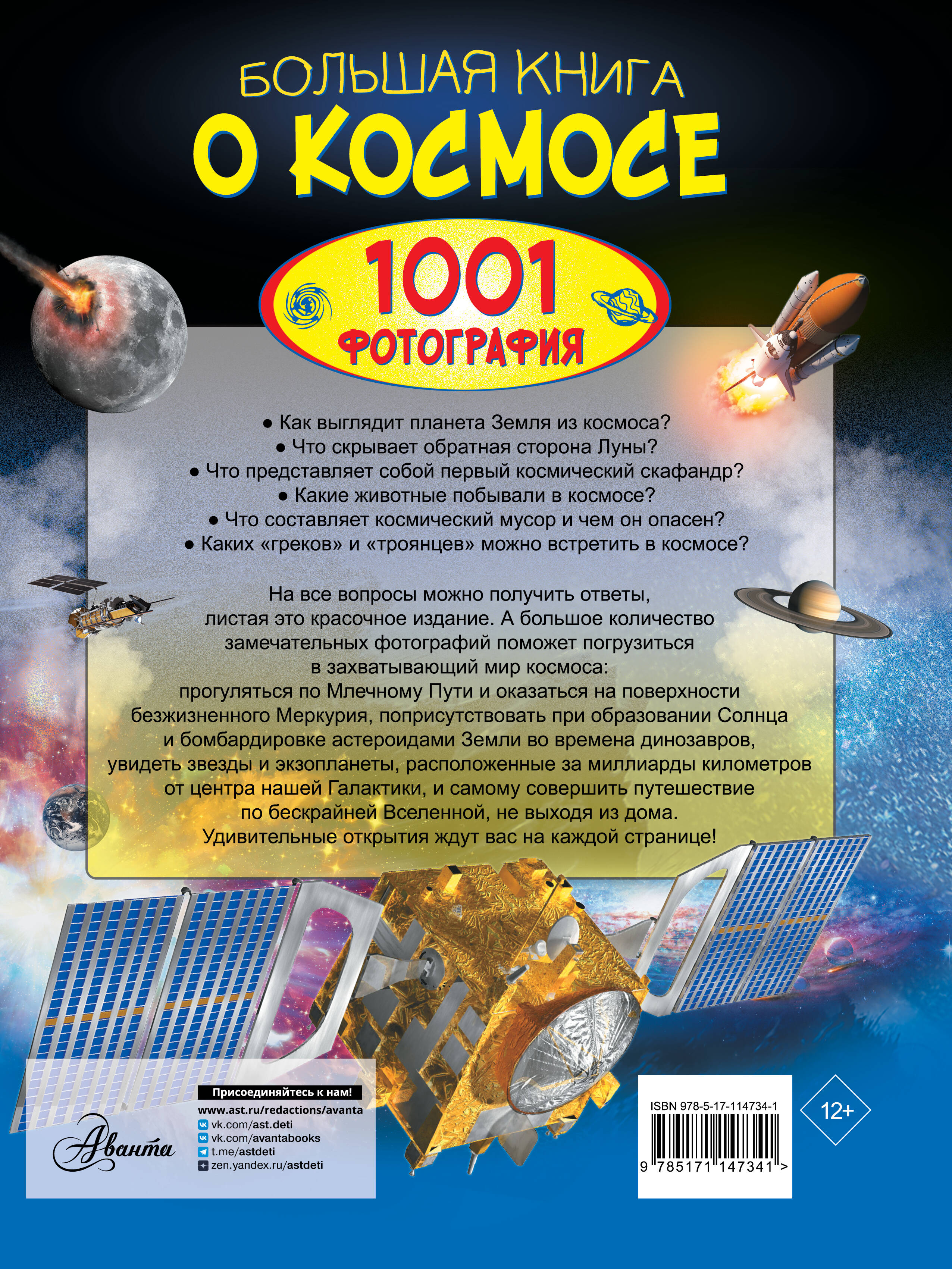 Как выглядин планета Земля из космоса? Что скрывает оборотная сторона Луны? Что представляет собой первый космический скафандр? Какие животные побывали в космосе? Что составляет космический мусор и чем он опасен? Каких "греков" и "троянцев" можно встретить в космосе? На все вопросы можно получить ответы, листая это красочное издание. А большое количество замечательных фотографий поможет погрузиться в захватывающий мир космоса: прогуляться по Млечному Пути и оказаться на поверхности безжизненного Меркурия, поприсутствовать при образовании Солнца и бомбардировке астероидами Земли во времена динозавров, увидеть звезды и экзопланеты, расположенные за миллиарды километров от центра нашей Галактики, и самому совершить путешествие по бескрайней Вселенной, не выходя из дома. Удивительные открытия ждут вас на каждой странице!| Издательство | ИЗДАТЕЛЬСТВО "АСТ" |