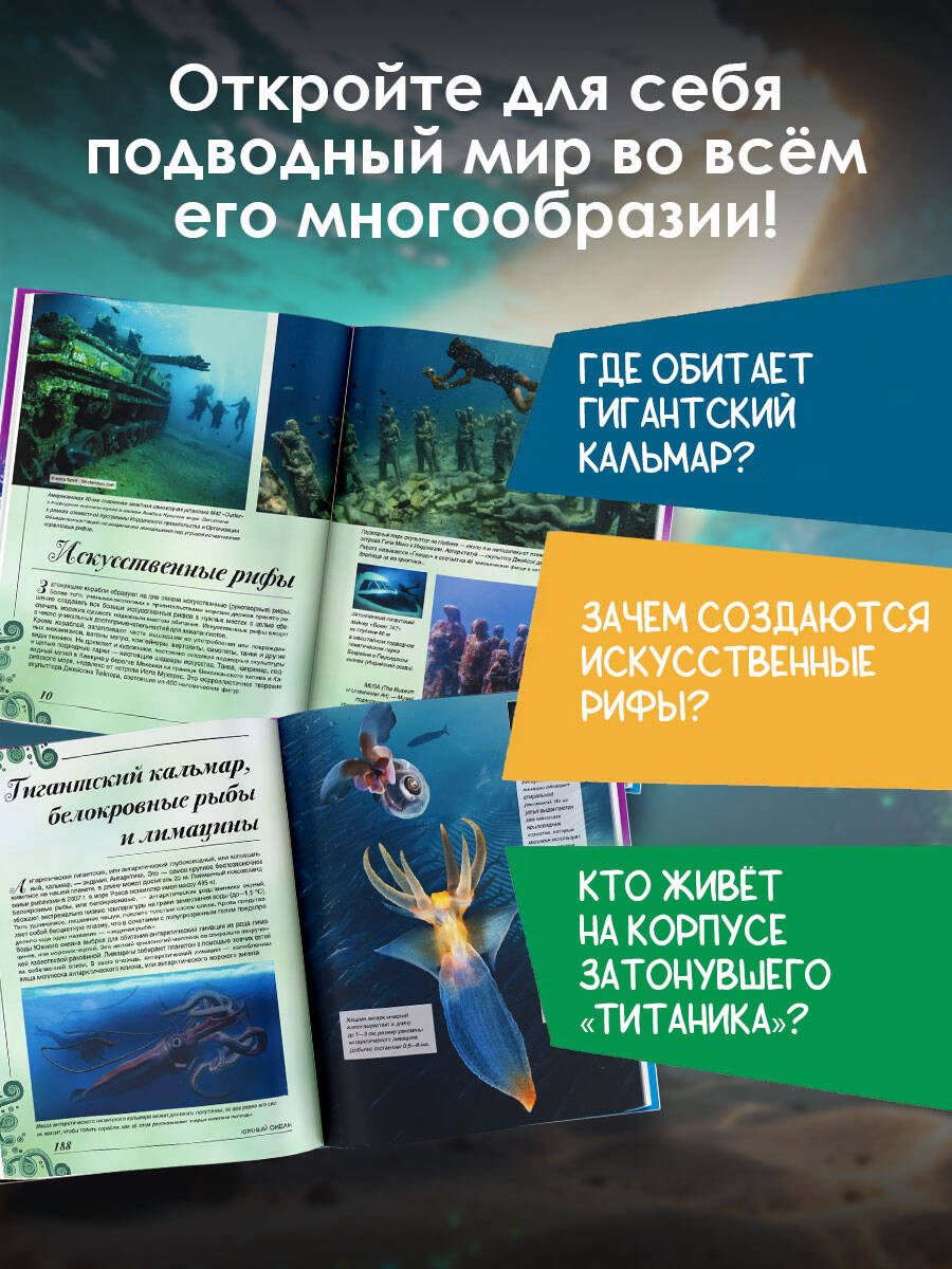 Чтобы узнать, какие тайны скрываются под толщей воды Мирового океана, покрывающего две трети земной поверхности, достаточно открыть эту книгу. Здесь представлен подводный мир во всем его разнообразии - животные, растения, неповторимые природные ландшафты и даже удивительные объекты, созданные руками человека. Увидеть в обычной жизни всё это очень сложно, зато на уникальных фотографиях можно рассмотреть в мельчайших подробностях. Содержательные статьи, описывающие все пять океанов нашей планеты, а также пресноводные водоемы, поразят вас множеством занимательных фактов. Весь подводный мир - таинственный и завораживающий - в одной книге! Для среднего и старшего школьного возраста.| Издательство | ИЗДАТЕЛЬСТВО "АСТ" |