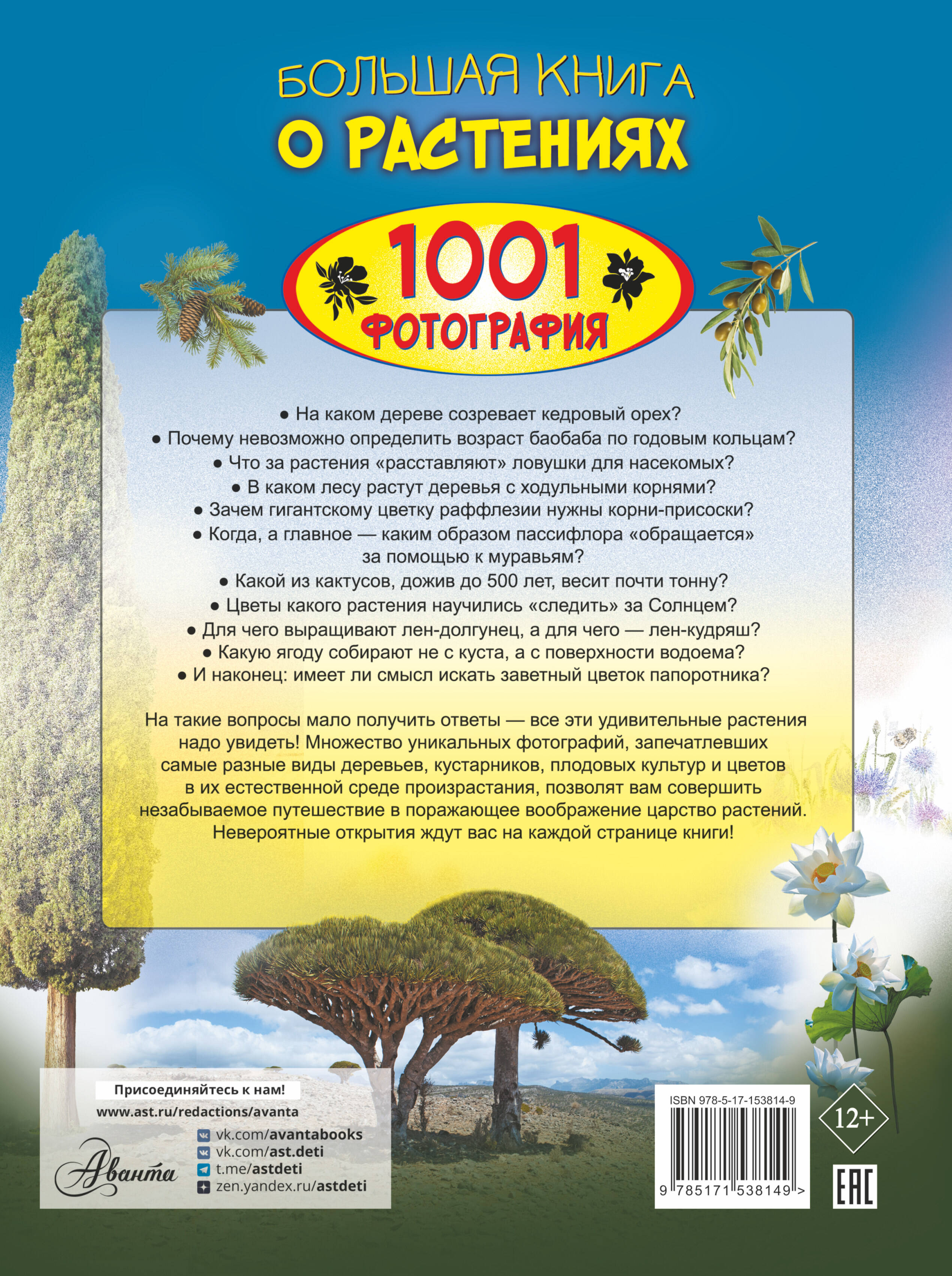 Чтобы увидеть редкие деревья, экзотические цветы и кустарники, узнать, где и как выращивают плодовые и зерновые культуры, разобраться, каким образом выживают представители флоры в самых разных условиях, совсем не обязательно пускаться в большое путешествие по далеким континентам. Достаточно открыть эту книгу - и все они окажутся перед вашими глазами! Здесь собраны как широко распространенные растения, так и единичные экземпляры, полюбоваться которыми - большая удача. На уникальных фотографиях запечатлены растения лесов и гор, жарких пустынь и холодных равнин, многочисленных пресных водоемов и даже морей и океанов. Содержательные статьи, описывающие то или иное растение, дополнены интересными фактами, что заставит вас взглянуть на удивительную природу нашей планеты совсем по-другому. Все растения, как уже хорошо знакомые, так и никогда не виданные, - в одной книге! Для среднего и старшего школьного возраста.| Издательство | ИЗДАТЕЛЬСТВО "АСТ" |