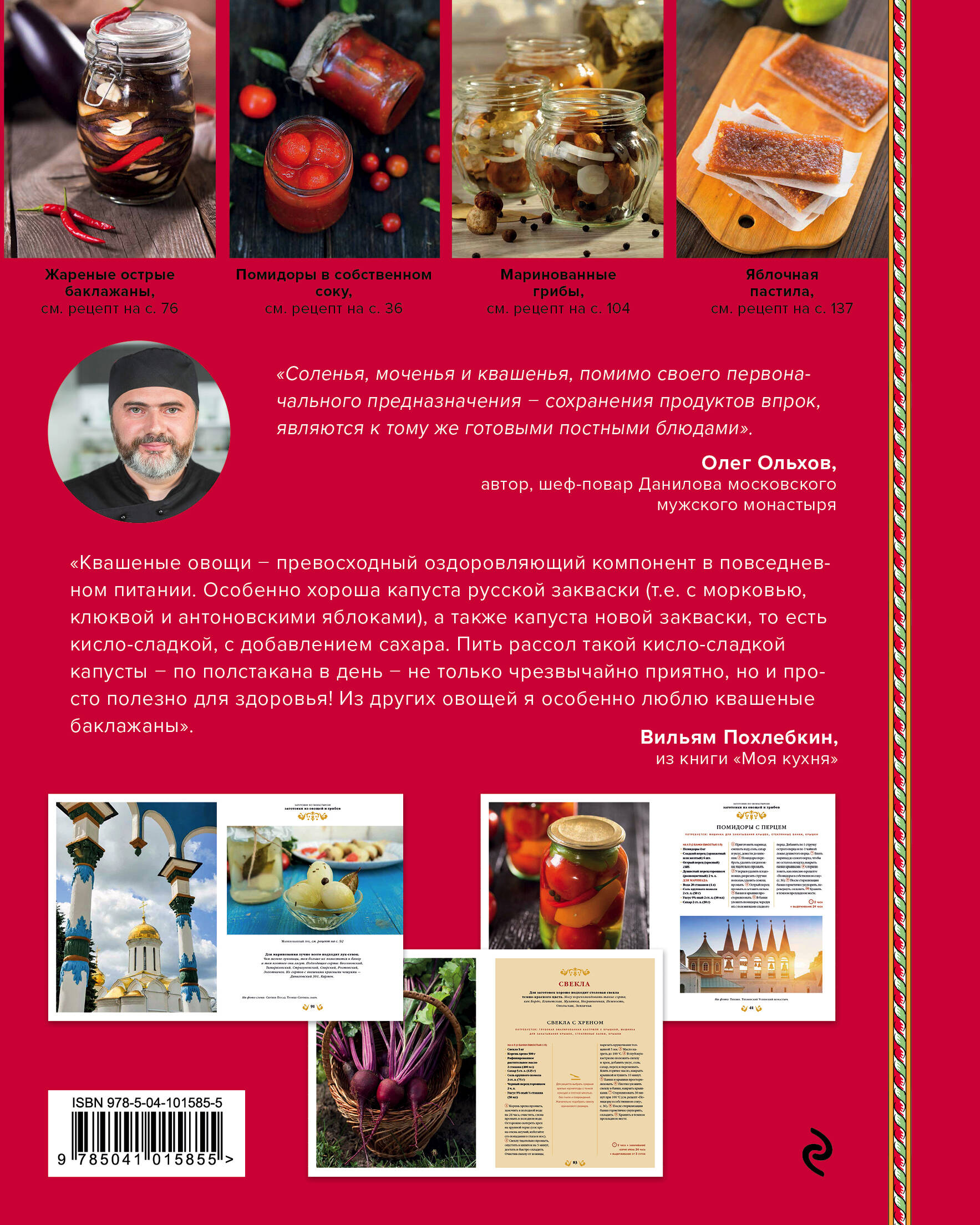Книга "Заготовки по-монастырски" в новой суперобложке. Традиционные для русской кухни мочение, квашение и соление можно назвать самыми древними способами консервирования. А вот маринование и консервирование в сахаре (приготовление варенья) вошли в нашу кухню позднее, но сегодня именно они широко распространены. Эта книга, по сути, о блюдах постного стола, часто вкушаемых нами в дни Петрова и Успенского постов. Ведь в июле и августе еще не все овощи поспевают, молодые яблоки не освящены, так что довольствуемся мочеными яблоками и грушами прошлого урожая и вытаскиваем из погреба последние банки с солеными огурцами, помидорами, перцами, грибами, чтобы освободить место для сохранения урожая нового. Эта книга, 3-я по счету, шеф-повара Данилова московского мужского монастыря Олега Ольхова о летних постах, и праздниках и заготовках, которые производятся в монастырях как для братии, так и для мирян.| Издательство | ООО "Издательство "Эксмо" |
