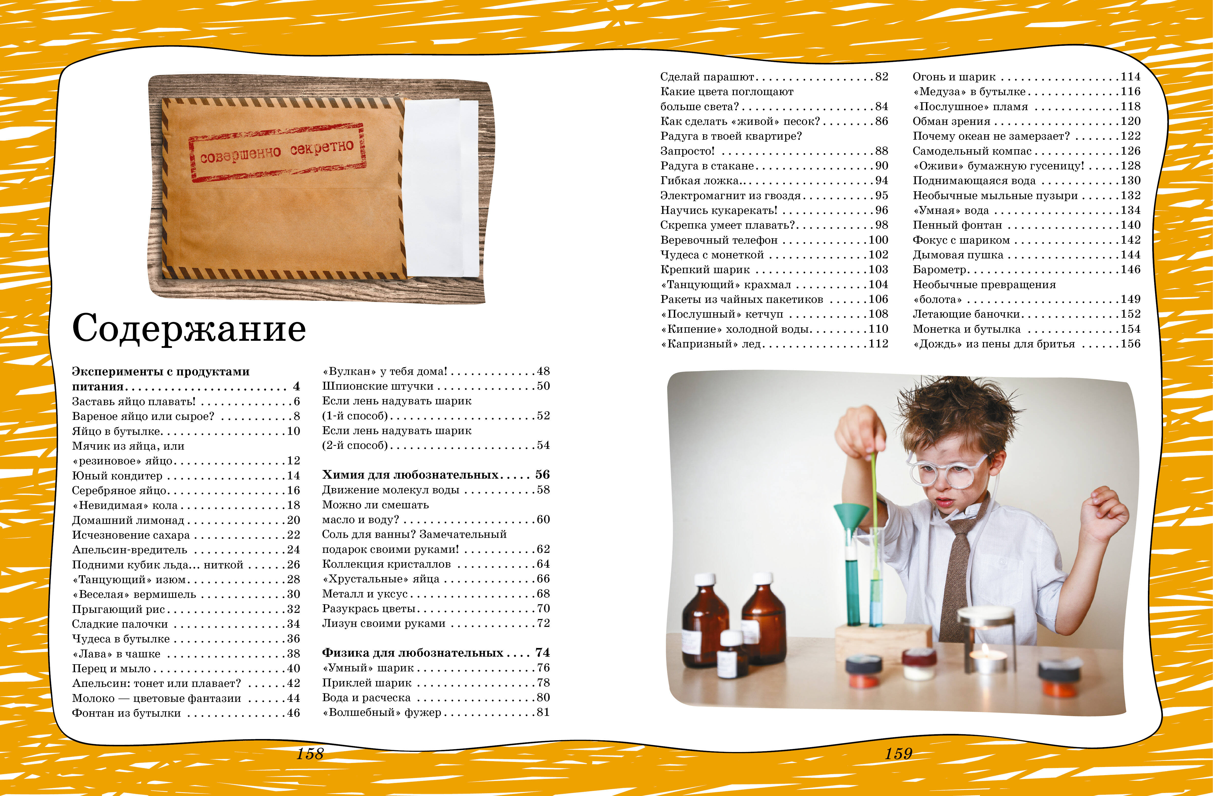 Почему сахар растворяется быстрее в горячей воде, чем в холодной? Почему идет дождь? По- чему в небе возникает радуга? Почему звучащий из рупора голос становится значительно громче обычного? Почему образуются кристаллы? Почему не замерзает океан? Почему происходит пре- ломление света? Почему вареное яйцо вращается быстрее сырого? Ответы на все свои "почему" ты найдешь в этой книге, ведь она подготовлена именно для таких любознательных ребят, как ты. На ее страницах продемонстрированы и объяснены явления, которые мы видим практически каждый день. "Чудеса, да и только" - скажешь ты. И будешь прав, ведь, если задуматься, мы сталкиваем- ся с чудесами постоянно. А теперь ты можешь творить их самостоятельно. Эта книга поможет тебе понять суть явлений - ты будешь сам проводить опыты и наблюдать, как и почему все происходит. А чтобы было проще, каждый из них имеет пошаговые инструкции и иллюстрации. Правда, в некоторых случаях тебе придется прибегнуть к помощи взрослых, да и определенные предметы и вещества тебе понадобятся. Однако пусть тебя это не смущает - вода, соль, сахар, яйцо, лимон, стакан, воронка и прочее есть в каждом доме. Поскорее открывай эту удивительную книгу. Изучив ее, ты приобретешь не только новые знания, подкрепленные практи- кой, но и получишь массу удовольствия. Поверь: скучно не будет, ты научишься смотреть на мир совсем по-другому. Для среднего и старшего школьного возраста.