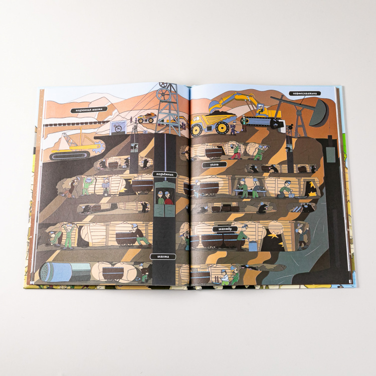 Ваш ребенок еще не умеет читать? Тогда будем сочинять. Что происходит на картинке? Предложите малышу придумать рассказ про героев иллюстрации. Как эти люди оказались здесь? Кого испугался шахтер? Куда так спешит мужчина на развороте с метро? Развивайте воображение и творческие способности с «Большими книгами»!