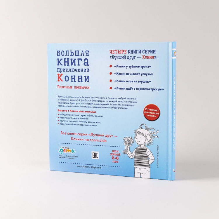 Первый поход к стоматологу, страх темноты, понимание сигналов своего тела и стрижка с удовольствием - всё станет легче, проще и понятнее с историями из жизни девочки Конни. Вместе с Конни ваш малыш найдёт ответы на все свои вопросы: научится вовремя проситься на горшок и не забывать про туалет во время игры, поймёт, почему так важно хорошо чистить зубы, ведь тогда можно реже их лечить, научится засыпать самостоятельно, избавится от страха перед парикмахерами.