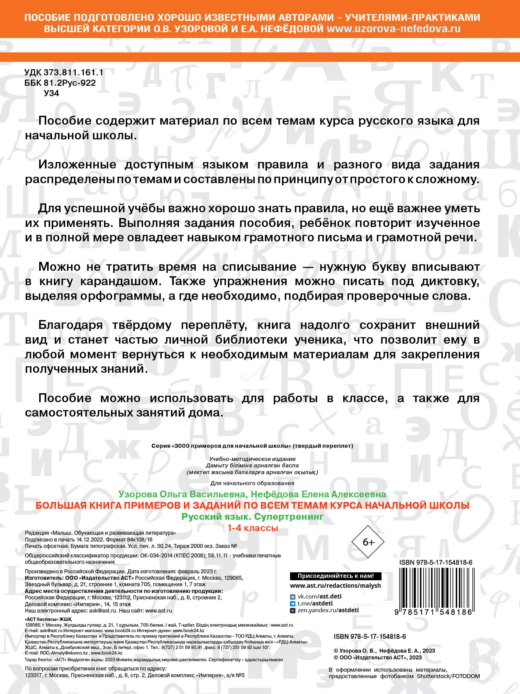 Большая книга примеров и заданий по всем темам курса начальной школы. 1-4 классы. Русский язык. Супертренинг