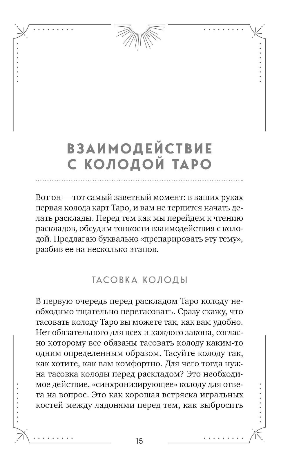 «Большая книга раскладов Таро» практика и блогера Алексея Гришина - это более 60 авторских раскладов и корректирующих техник разного уровня сложности. С ее помощью вы сможете получить ответы на волнующие вопросы, получить подсказку в затруднительной ситуации и найти из нее выход. В этой книге вас ждут: • Диагностические расклады на все случаи жизни, денежные расклады, расклады на любовь с отсылками к древним мифам, сказочным сюжетам и литературным произведениям, которые еще больше подчеркивают глубину карт Таро. • Примеры реальных раскладов со схемами и разборами. • Авторская методика чтения раскладов с использованием карты-тайника и расчетом ключевого Старшего аркана (КСА). • Понятные и экологичные методы коррекции результатов расклада. • Полезные приложения с краткими значениями Старших и Младших арканов. Автор книги, Алексей Гришин, работает с картами Таро с 19 лет и посвятил этому всю свою сознательную жизнь, доказав, что Таро помогает улучшить качество жизни людей, вопреки всем предрассудкам.| Издательство | Эксмо |