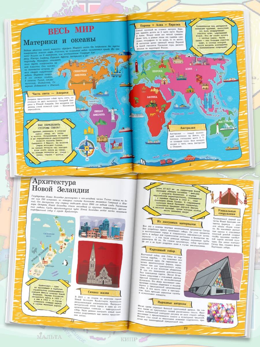 Отправиться в путешествие по материкам и островам земного шара, узнать многое о народах и странах мира, в том числе о крупнейшем на планете государстве - России, - приглашает всех любознательных ребят эта большая иллюстрированная книга с дополненной реальностью. На ее страницах вы с легкостью найдете ответы на самые разные вопросы по географии и истории, как достаточно простые, так и весьма каверзные, и сможете не только увереннее чувствовать себя на школьных уроках, но и прослыть среди сверстников настоящими эрудитами. Хотите знать, как называется главная площадь Санкт-Петербурга и под руководством какого зодчего был возведен знаменитый на весь мир собор Василия Блаженного? Какие города входят в популярный туристический маршрут "Золотое кольцо России" и кем был создан первый русский музей? Какое полезное ископаемое образно именуют черным золотом, а какое после обработки называют бриллиантом? В какой стране была придумана система регулярных парков, а в какой - созданы фантастические Сады у Залива? Какое сооружение называют "Вратами Тегерана", а какое - "Воротами Индии"? Какой замок поразительно напоминает здание Хогвардса из романов о Гарри Поттере, а какой считается домом графа Дракулы? Откройте эту книгу, рассмотрите подробные карты и зрелищные иллюстрации, прочтите важную и полезную информацию и познакомьтесь с самыми выдающимися достопримечательностями разных уголков России и мира с помощью дополненной реальности! Воспользуйтесь возможностями 4D-технологий и начните изучать нашу Родину и всю удивительную планету по-новому! Для среднего и старшего школьного возраста.| Издательство | Издательство "АСТ" |