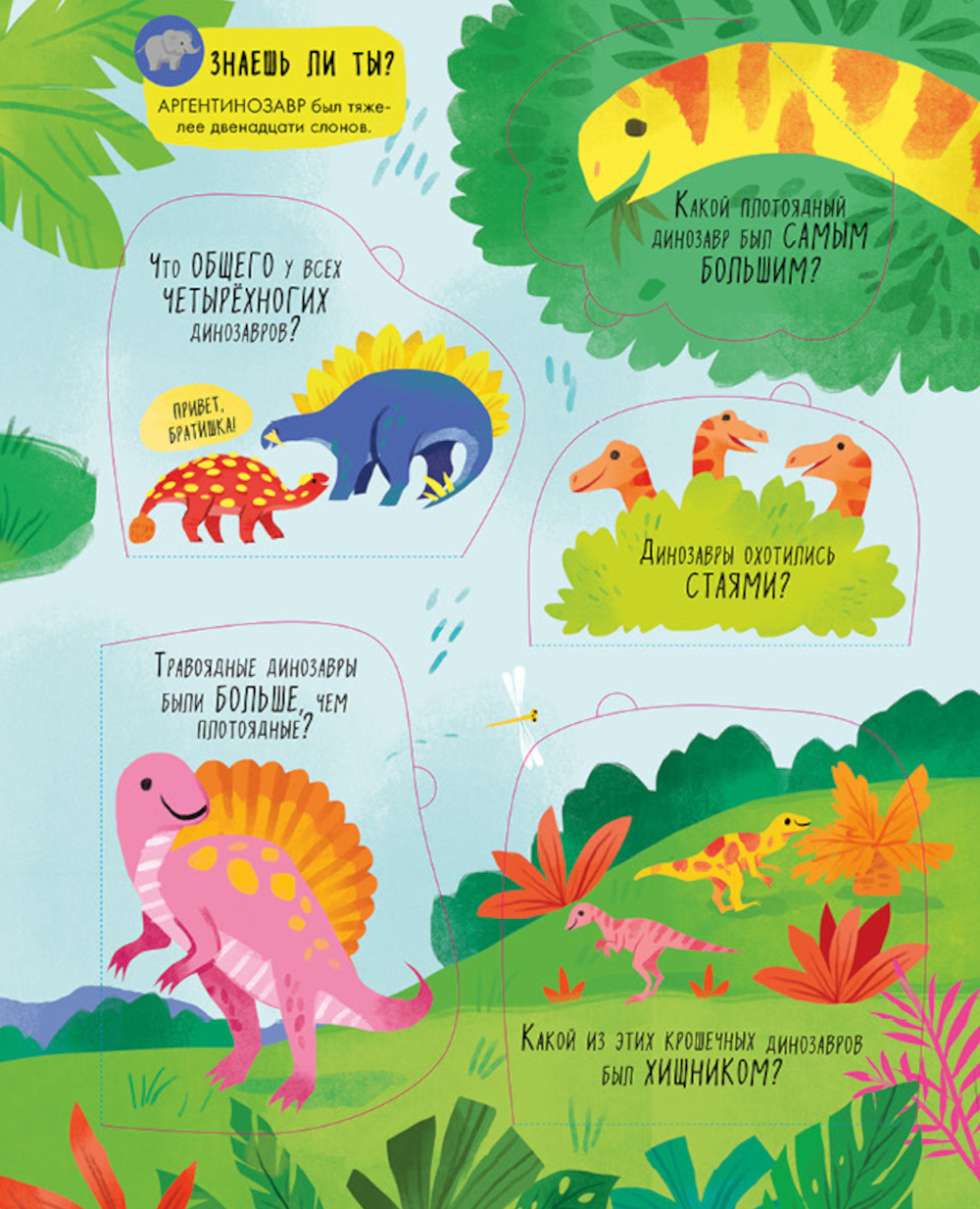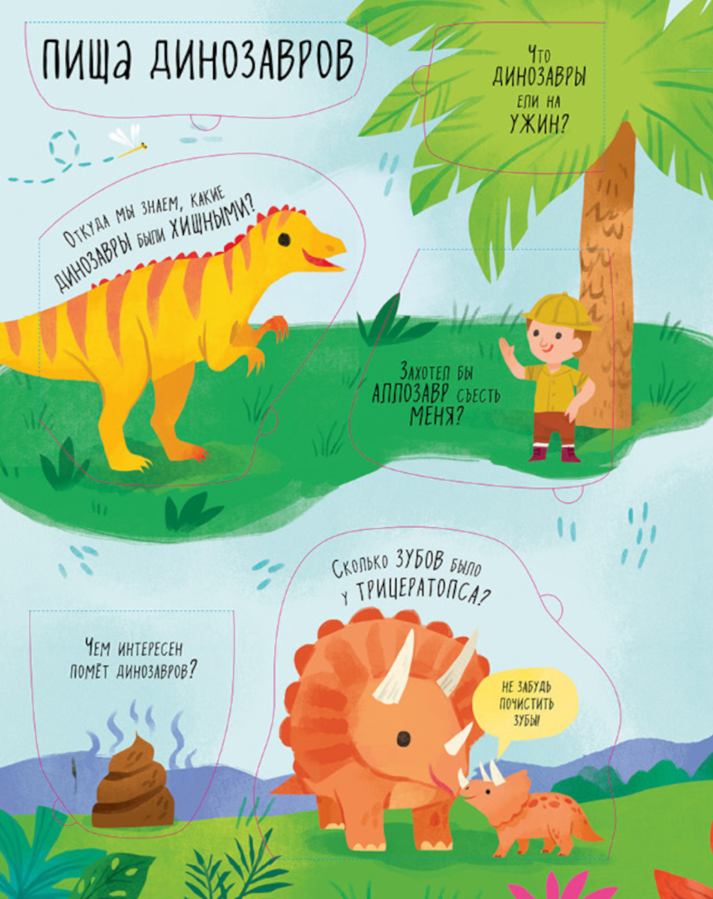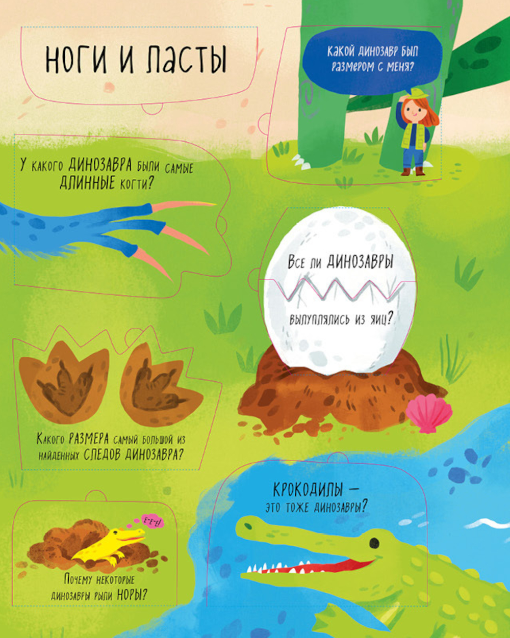 Миллионы лет назад на Земле жили невероятные создания. Маленькие и огромные, хищные и травоядные… А вы когда-нибудь задумывались, как выглядел самый первый динозавр? Умели ли динозавры плавать? Как быстро бегал тираннозавр? У каких динозавров были перья? Открывайте окошки книги «Динозавры» и отправляйтесь в прошлое, чтобы узнать побольше об этих удивительных созданиях. Информация в книге подана в доступной для ребенка форме, а яркие иллюстрации помогают наглядно представить, как выглядели и что делали динозавры миллионы лет назад. «Большая книга с окошками. Динозавры» сделана из плотного прочного картона, поэтому будет долго радовать маленьких читателей.| Издательство | Клевер-Медиа-Групп |