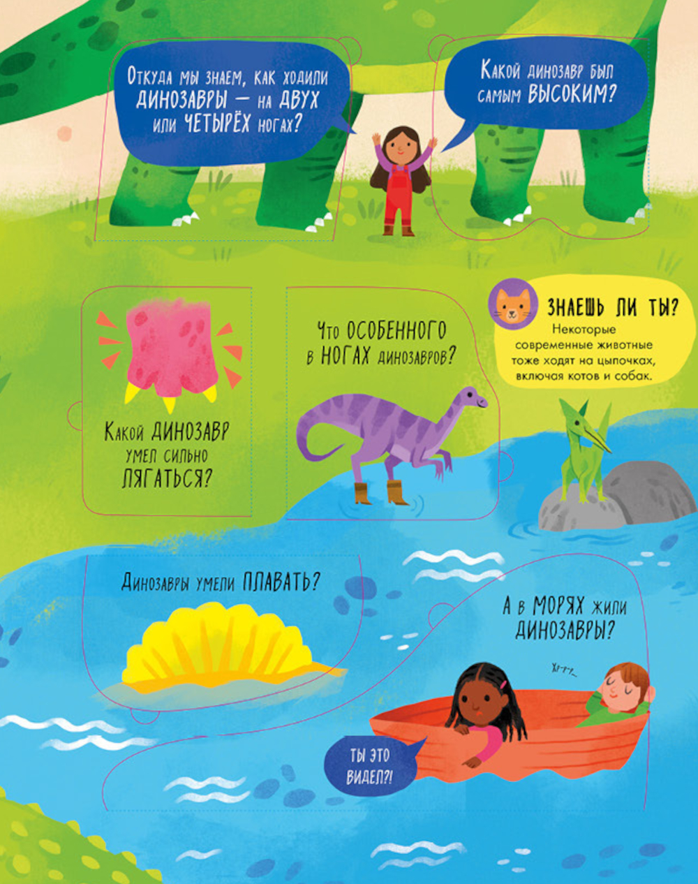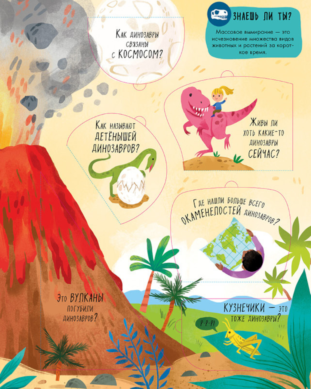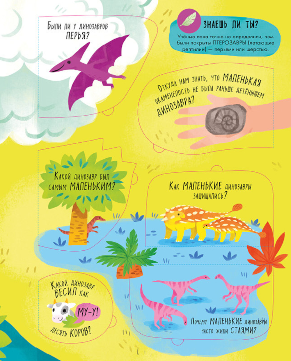 Миллионы лет назад на Земле жили невероятные создания. Маленькие и огромные, хищные и травоядные… А вы когда-нибудь задумывались, как выглядел самый первый динозавр? Умели ли динозавры плавать? Как быстро бегал тираннозавр? У каких динозавров были перья? Открывайте окошки книги «Динозавры» и отправляйтесь в прошлое, чтобы узнать побольше об этих удивительных созданиях. Информация в книге подана в доступной для ребенка форме, а яркие иллюстрации помогают наглядно представить, как выглядели и что делали динозавры миллионы лет назад. «Большая книга с окошками. Динозавры» сделана из плотного прочного картона, поэтому будет долго радовать маленьких читателей.| Издательство | Клевер-Медиа-Групп |