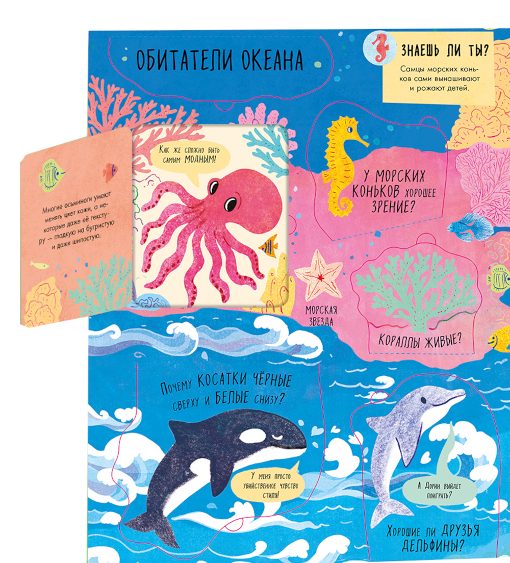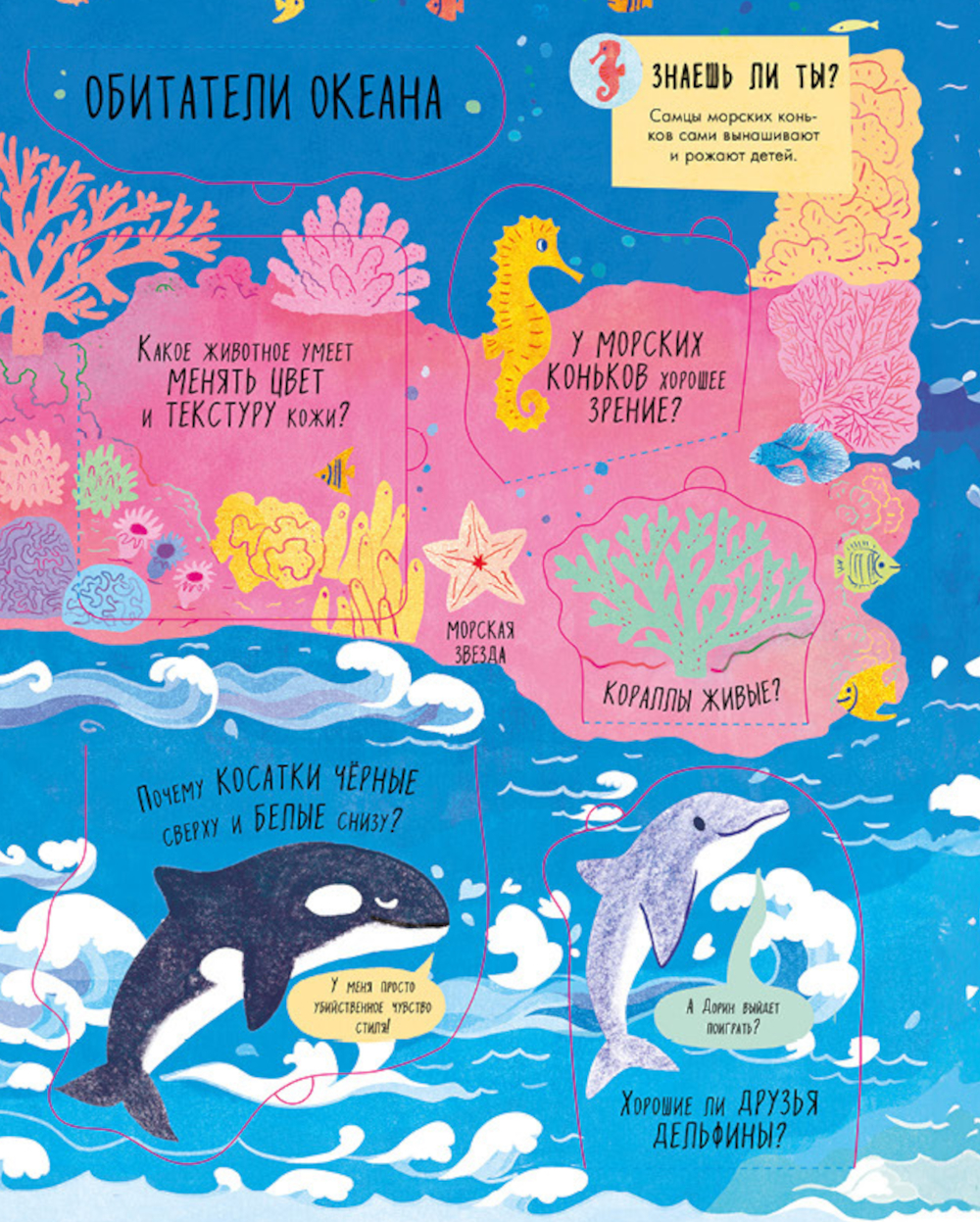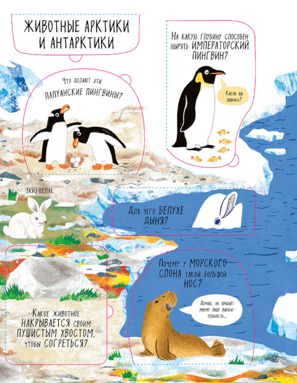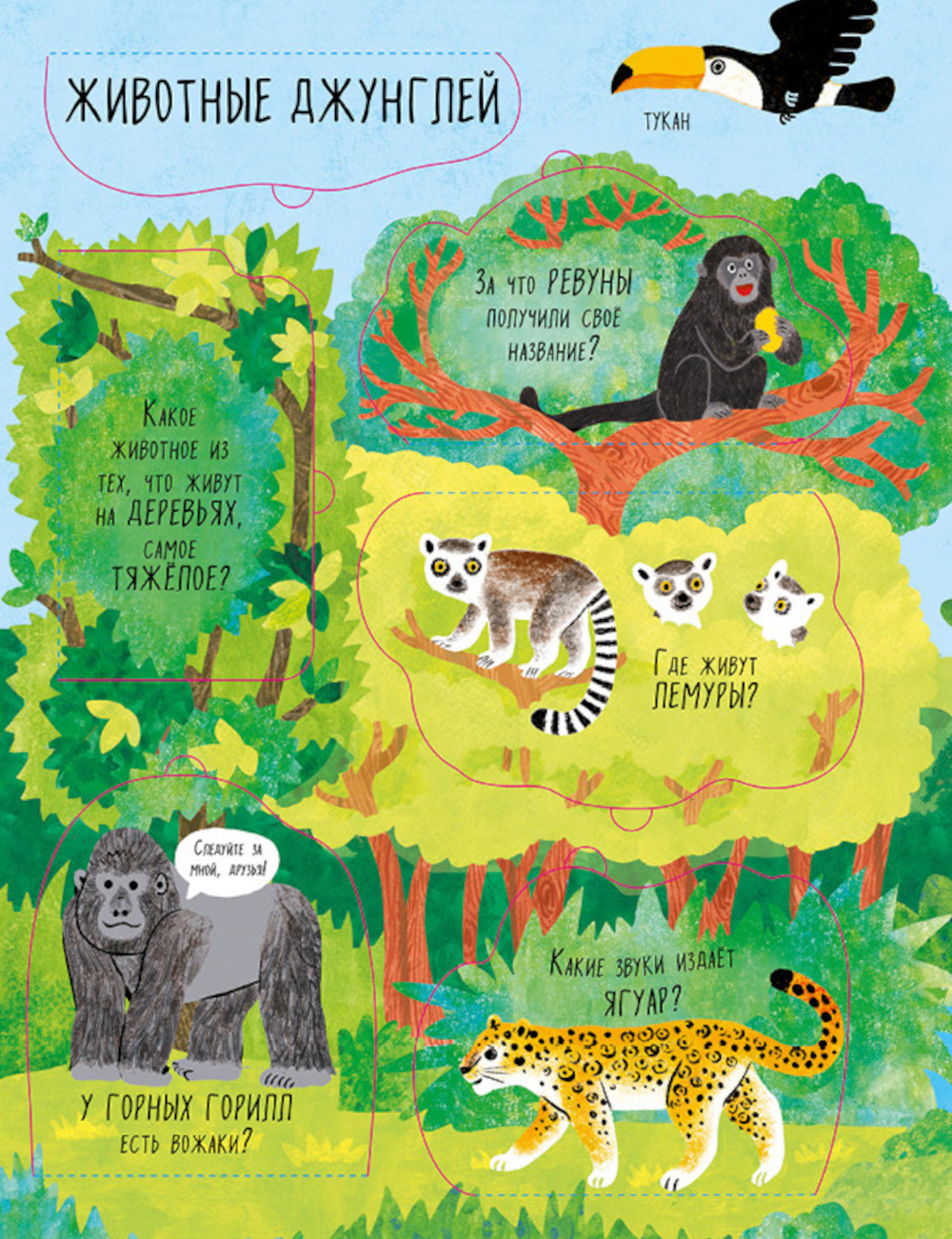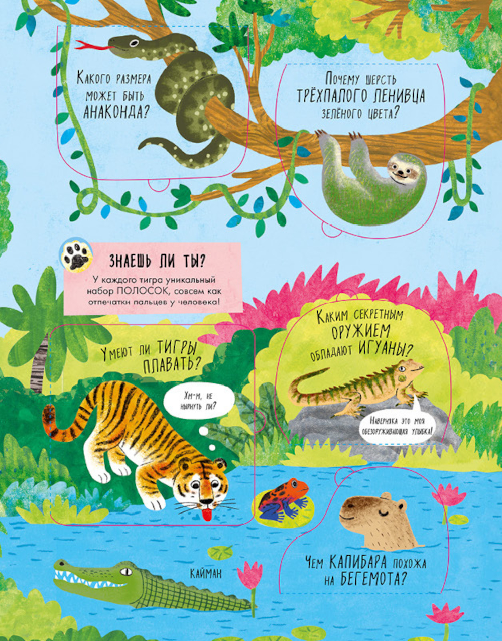 Какое животное двигается так медленно, что обрастает водорослями? Кто такой морской единорог? Какой длины может достигать гигантская змея анаконда? На эти и другие вопросы ответит «Большая книга с окошками. Животные». На каждой странице - несколько клапанов, под которыми прячутся интересные факты. Интерактивный формат книги превращает чтение в игру и еще больше вовлекает ребенка в процесс познания животного мира. Вместе с этой книгой маленький читатель побывает в джунглях, в лесу, в пустыне, спустится на дно океана и узнает, как живут обитатели разных природных зон, чем питаются, какие у них особенности и отличия. «Большая книга с окошками. Животные» идеально подходит как для совместного с родителями, так и для самостоятельного чтения ребенка. Он может сам изучить все интересные факты, а может открывать окошки: текст будет читать взрослый. С помощью интерактивной энциклопедии ребенок получит прочные основы знаний об окружающем мире, которые обязательно пригодятся ему во время обучения в школе.| Издательство | Клевер-Медиа-Групп |