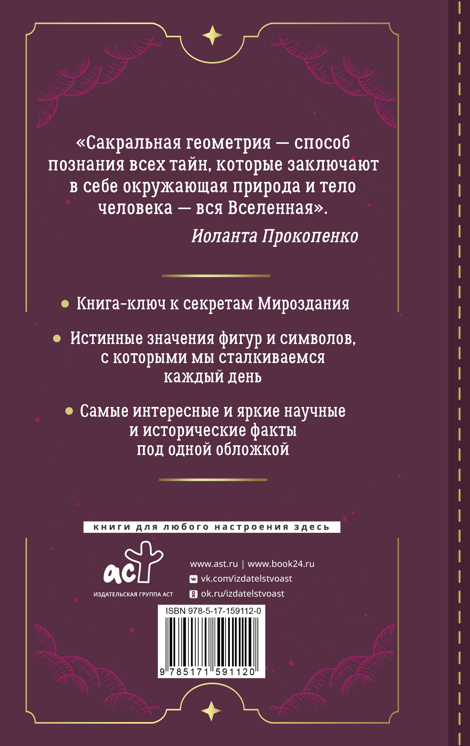 Сакральная геометрия - это древняя система символов и форм, олицетворяющая гармонию и баланс во Вселенной. Она базируется на убеждении, что любая точка, линия или фигура имеет свое собственное значение, свой духовный и философский смысл. Они имеют связь с космическим порядком и влияют на энергию и сознание человека. Сакральная геометрия встречается в различных культурах и религиях, включая египетскую, греческую, индийскую, майя и другие. Эта книга содержит огромный материал о значении фигур и символов, с которыми мы сталкиваемся каждый день, но не понимаем, в чем их суть. Эта книга будет вашим проводником в мир загадок и тайн. Прочитав ее, вы познакомитесь с основными понятиями сакральной геометрии и убедитесь, что она присутствует повсюду в окружающем мире и даже в нас самих. Все во Вселенной - от простейших фигур до полотен гениальных художников прошлого - содержит в себе ключ для разгадки великих тайн мира и человека. Разобравшись в сакральной геометрии, вы не только сможете менять внутреннее и внешнее пространство, но и научитесь создавать собственный мир в соответствии со своими собственными желаниями, используя энергию сакральных элементов.| Издательство | Издательство "АСТ" |