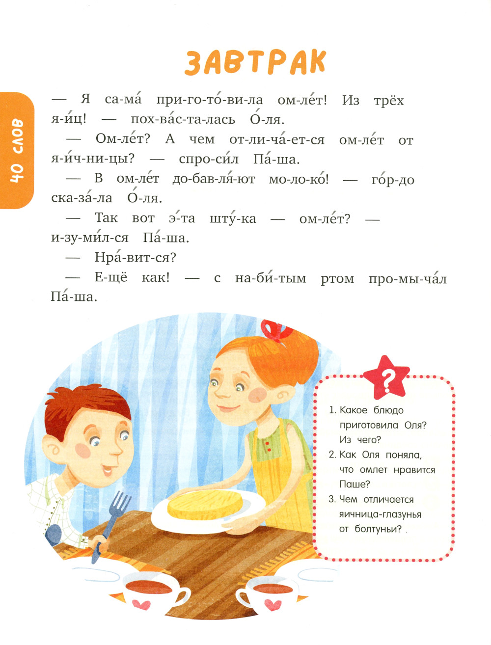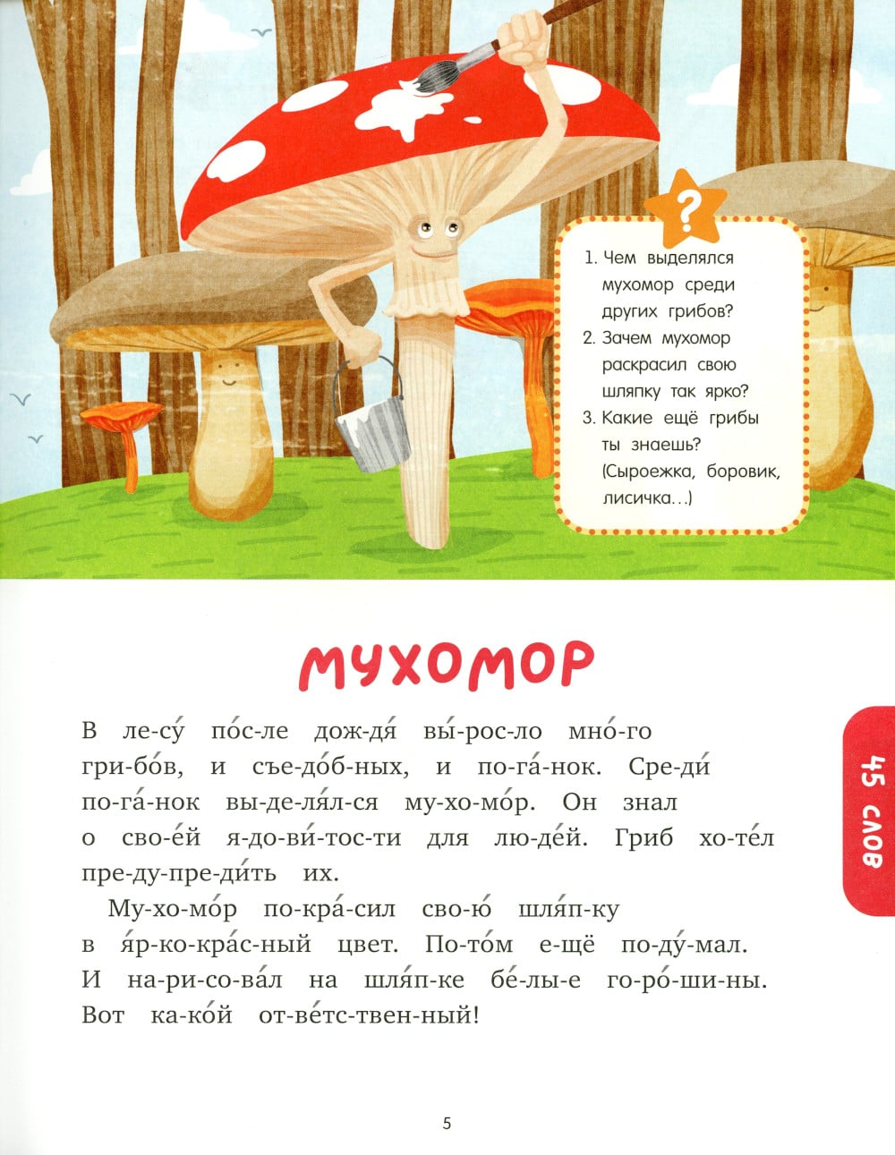 В этой книге есть все, чтобы учиться читать было легко и интересно: - Короткие сказки с увлекательными сюжетами; - Смысловые вопросы к сказкам; - Крупный шрифт; - Слова разделены на слоги; - Ударение во всех словах.| Издательство | Клевер-Медиа-Групп |