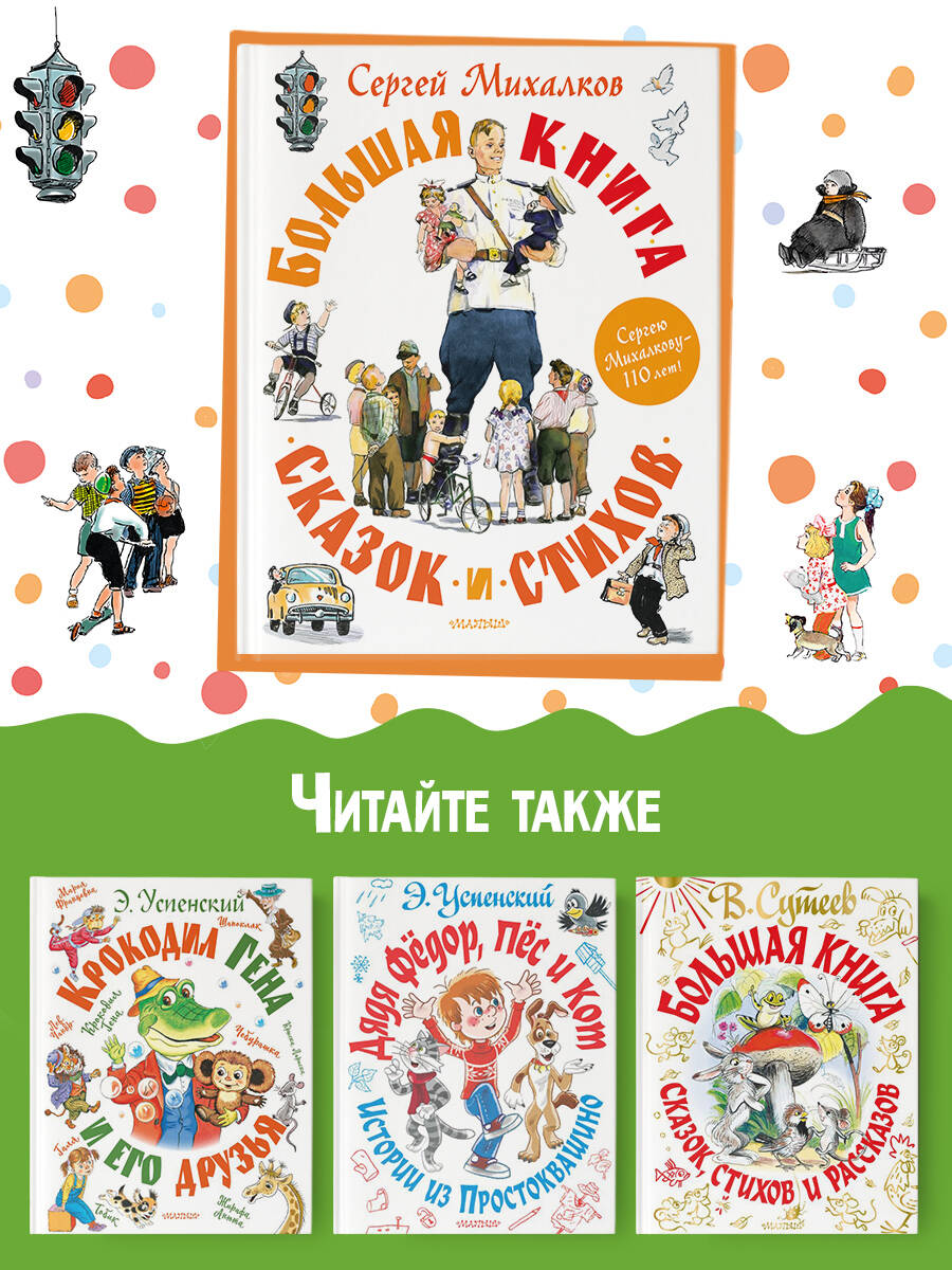 Любимым сладкоежкам и маленьким исследователям - самая большая книга стихов и сказок знаменитого поэта и писателя Сергея Михалкова! На каждой страничке ждут не дождутся новых друзей щенок Трезор, милые котята, упрямый Фома, справедливый дядя Стёпа, розовенькие поросята, заяц Трусохвостик и другие герои весёлых и мудрых произведений! Самая большая книжка Сергея Михалкова для самых маленьких любителей чтения и развлечения! Рассматривайте большие картинки, читайте стихи, сказки, разгадывайте загадки, учите буквы и цифры, пойте песенки и знакомьтесь с героями, которые станут лучшими друзьями на всю жизнь!| Издательство | ИЗДАТЕЛЬСТВО "АСТ" |
