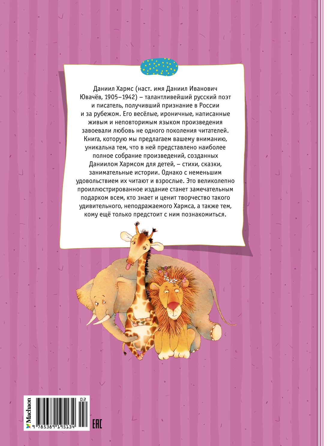Даниил Хармс (наст. имя Даниил Иванович Ювачёв, 1905-1942) - талантливейший русский поэт и писатель, получивший признание в России и за рубежом. Его весёлые, ироничные, написанные живым и неповторимым языком произведения завоевали любовь не одного поколения читателей. Книга, которую мы предлагаем вашему вниманию, уникальна тем, что в ней представлено наиболее полное собрание произведений, созданных Даниилом Хармсом для детей, - стихи, сказки, занимательные истории. Однако с неменьшим удовольствием их читают и взрослые. Это великолепно проиллюстрированное издание станет замечательным подарком всем, кто знает и ценит творчество такого удивительного, неподражаемого Хармса, а также тем, кому ещё только предстоит с ним познакомиться.| Издательство | Махаон |