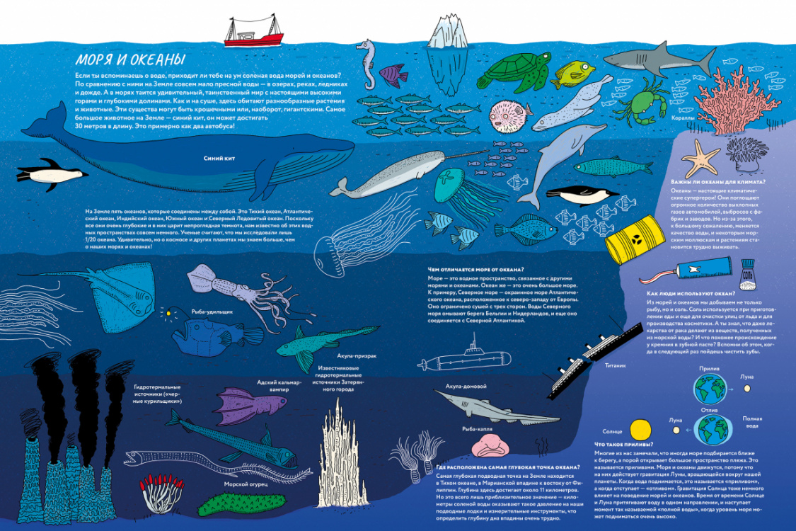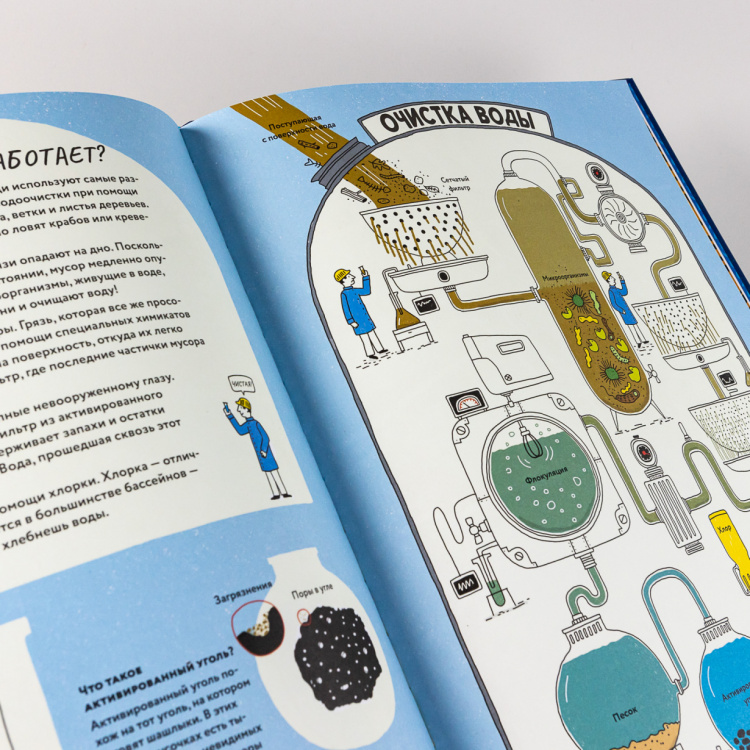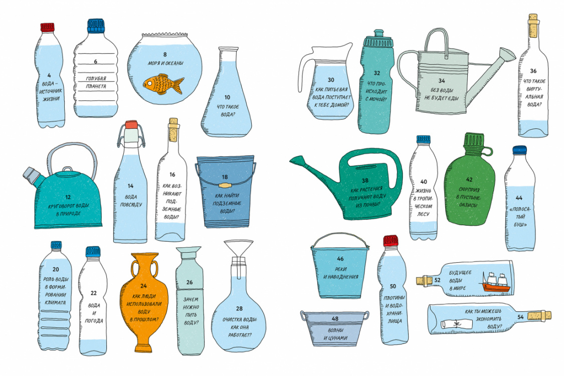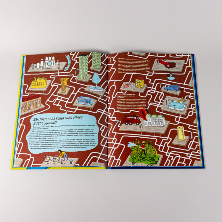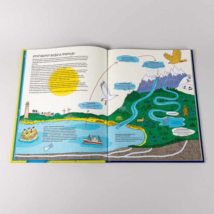 Чем море отличается от океана? Как растения получают воду из почвы? Почему в одних странах дождь идет чаще, чем в других? Как вода попадает к тебе домой и что происходит, когда ты смываешь её в унитазе? Как устроены плотины и водохранилища? Зачем нужно пить воду? Эти и многие другие интересные и важные темы описаны в данной книге. Читай, рассматривай яркие детализированные иллюстрации и узнавай о воде всё-всё. И не забывай её беречь! А зачем - тоже узнаешь из этой книги.