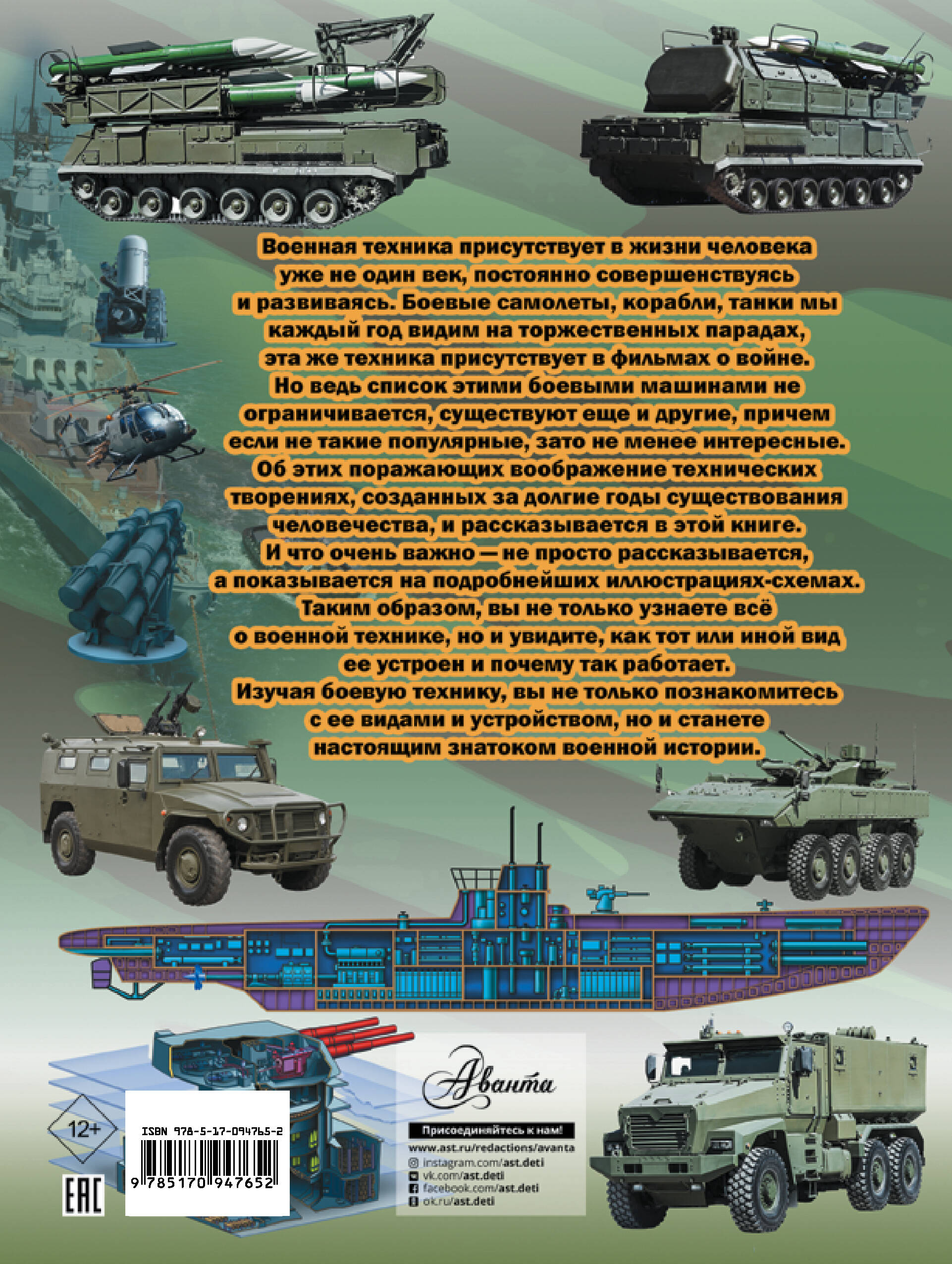 В "Большая книга военной техники для мальчиков" вы познакомитесь с боевыми самолетами, кораблями, танками, узнаете историю создания и развития военной техники, ее значение и влияние в ходе мировых войн. Прочитав эту книгу, вы с легкостью будете узнавать модели, которые видите на торжественных парадах, или в легендарных фильмах о войне. Также на страницах этой книги, вы повстречаете и другие боевые машины, не такие популярные, зато не менее интересные. Тексты в издании подкреплены подробными иллюстрациями и схемами. Таким образом, вы не только узнаете всё о военной технике, но и увидите, как тот или иной вид ее устроен и почему работает. Для среднего и старшего школьного возраста.| Издательство | Издательство "АСТ" |