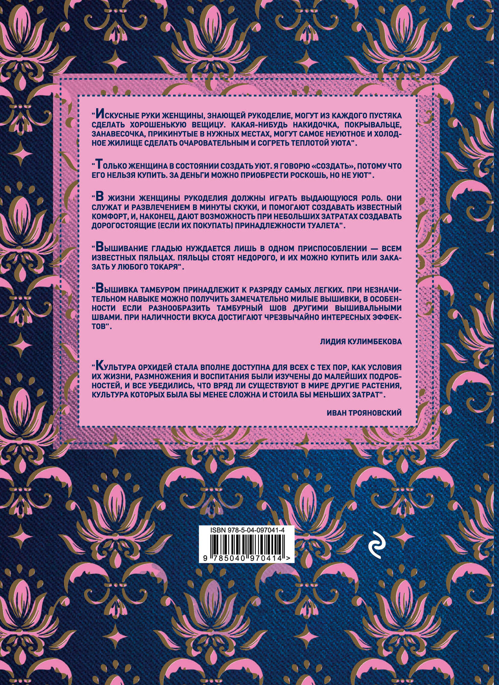 Более 350 рисунков, схем и таблиц различных вышивок. Приложение к книге рукоделий - отдельная глава о разведении орхидей по месяцам с черно-белыми очень разнообразными и отлично прорисованными иллюстрациями видов орхидей. Великолепная цветная вкладка со старинными картинами рукодельниц.| Издательство | ООО "Издательство "Эксмо" |
