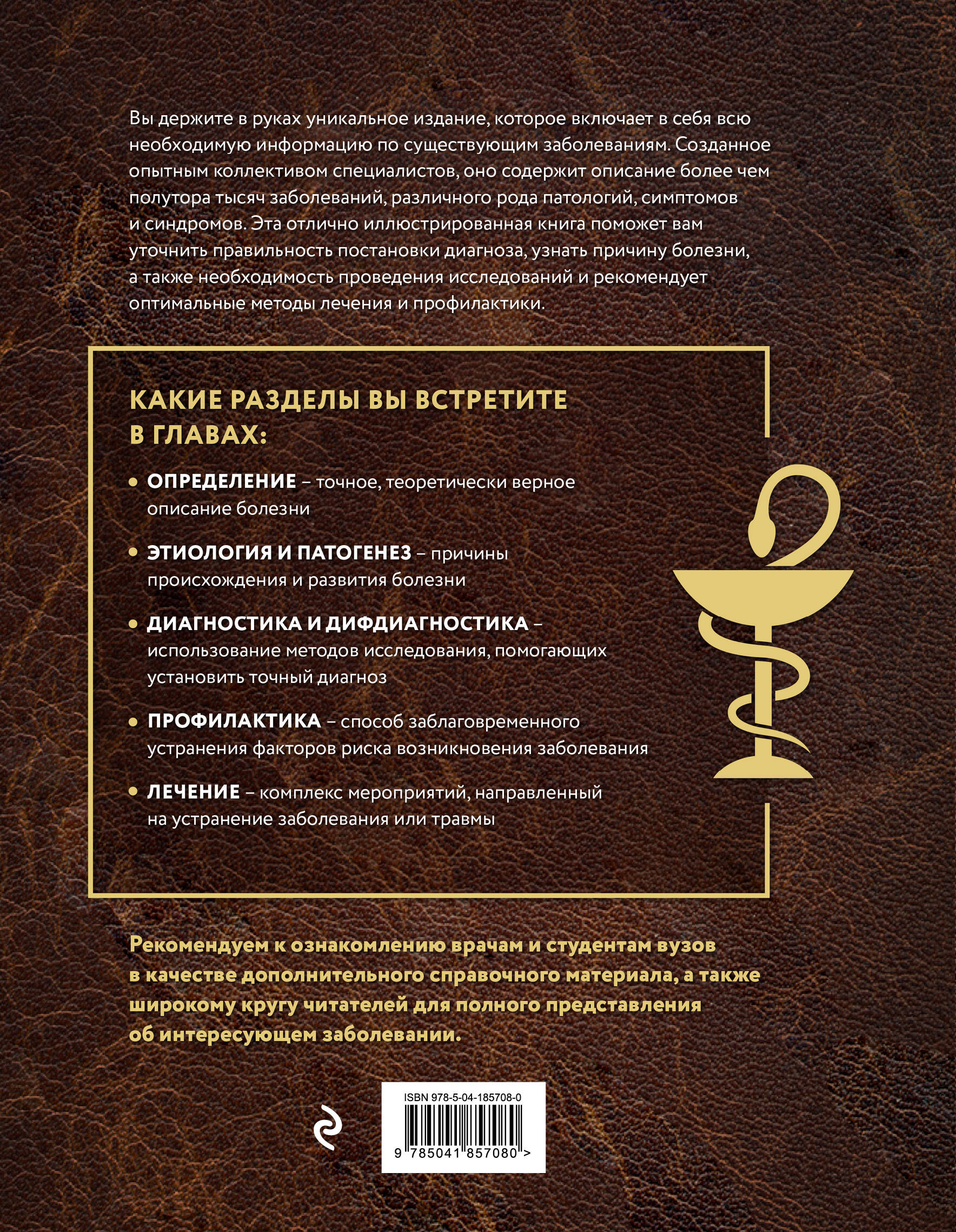Данная книга является дополненным и актуализированным изданием Большой медицинской энциклопедии, проданной в количестве более 1 000 000 экземпляров. На страницах книги вы найдете подробную характеристику заболеваний с дополнительными иллюстрациями. Удобная постраничная навигация от А до Я поможет быстро сориентироваться в содержании, также в конце есть словник с определениями каждого медицинского термина. Незаменимая книга для всех, кто стремится пополнить свои знания и кто ценит свое здоровье.| Издательство | ООО "Издательство "Эксмо" |