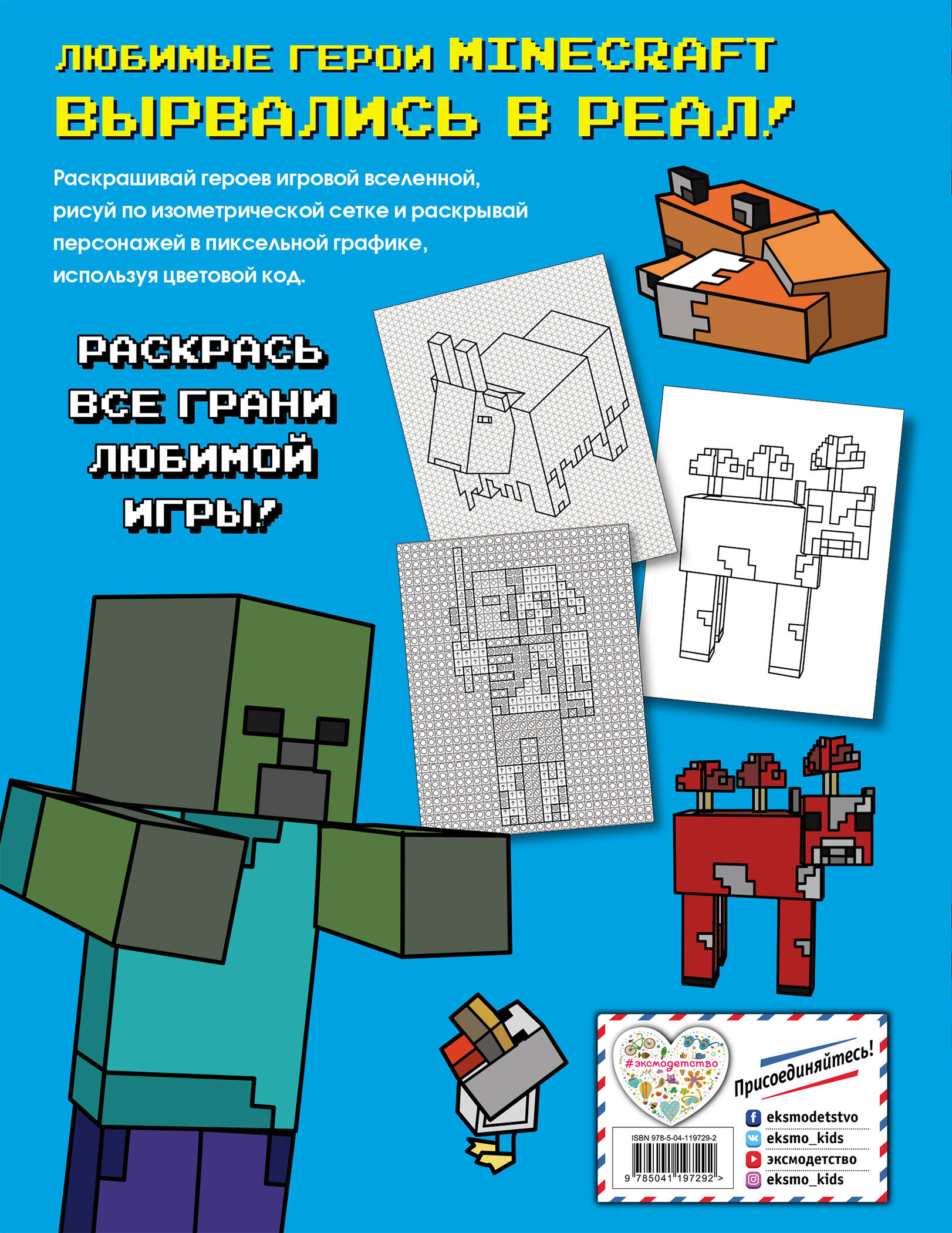 Осторожно! Это издание предназначено только для реальных фанатов Minecraft! Отправляйся в квест по миру цвета. Выбери своего персонажа, и за дело! Раскрась все картинки, расшифруй изображения в пиксельной графике, нарисуй своих собственных персонажей на изометрической сетке. Теперь Minecraft вышел в реал. Хватай карандаши и вдарь забойной дозой красок по миру блоков! Успехов, юный фанат! Здесь только ты решаешь, как будет выглядеть этот мир!| Издательство | ООО "Издательство "Эксмо" |