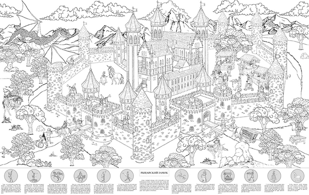 Рыцарский замок. Большая раскраска с наклейками