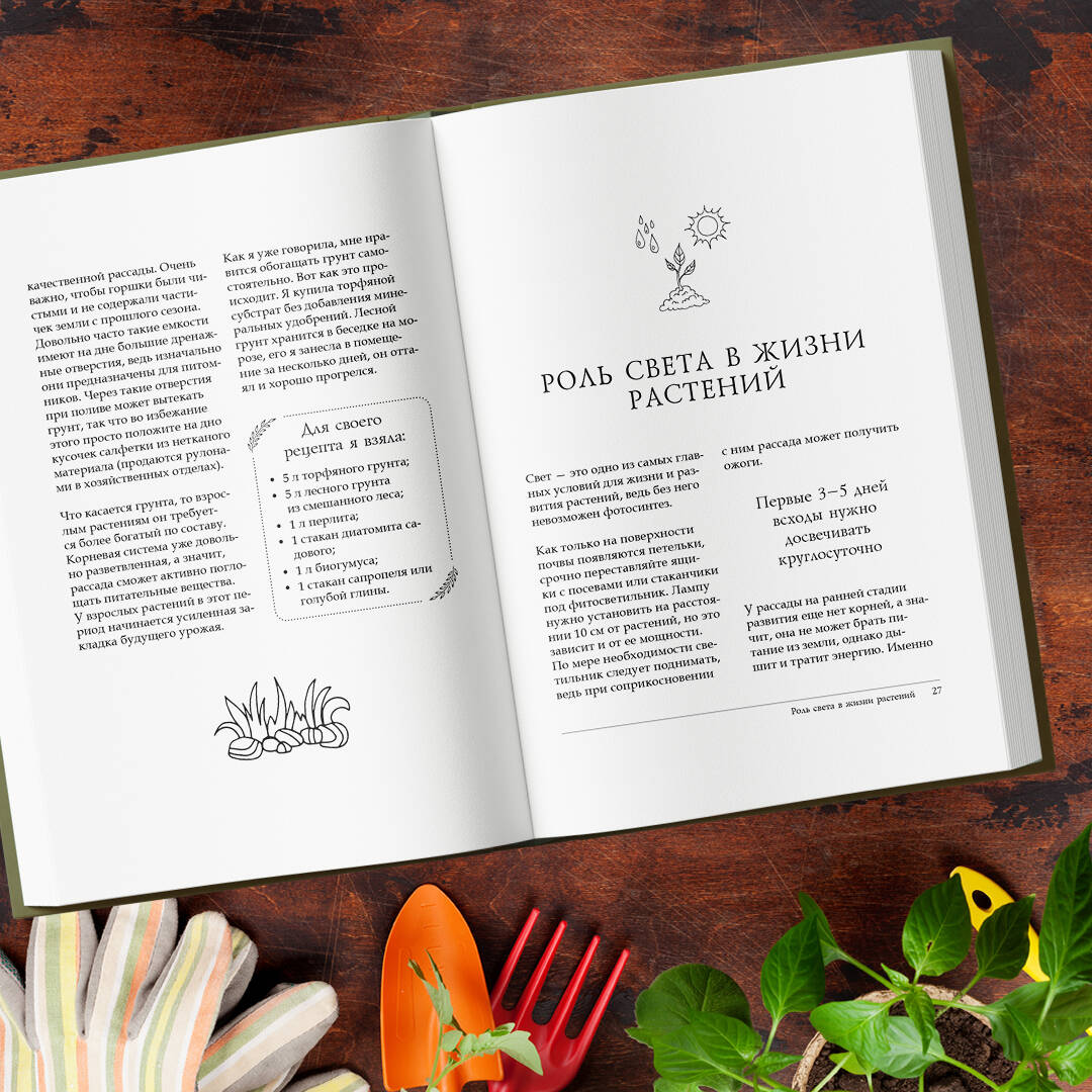 Мечтаете создать на своем загородном участке атмосферу комфорта и уюта? Горите желанием вырастить урожай без применения ударных доз минеральных удобрений, химических фунгицидов, инсектицидов и гербицидов? Даже если ваш участок размером всего в пять соток, при правильной планировке и проверенной агротехнике вам удастся не только получить разнообразный и довольно богатый урожай, но и благоустроить территорию с минимальными затратами! Марина Рыкалина - популярная ведущая передачи о дачном хозяйстве на телеканале «Усадьба», блогер @marina_rikalina (147 тыс. подписчиков) и автор канала на YouTube «Дачные сезоны с Мариной Рыкалиной». Автор на протяжении многих лет показывает дачникам на собственном примере, что можно вырастить богатые урожаи даже в неблагоприятной климатической зоне, применяя принципы органического земледелия. В этой книге вы найдете: - способы посева семян на рассаду для лучшей всхожести; - правила досветки всходов, рецепт идеального грунта и сроки пересадки; - современные органические подкормки и удобрения; - рекомендации по оптимальной планировке огорода.| Издательство | Эксмо |