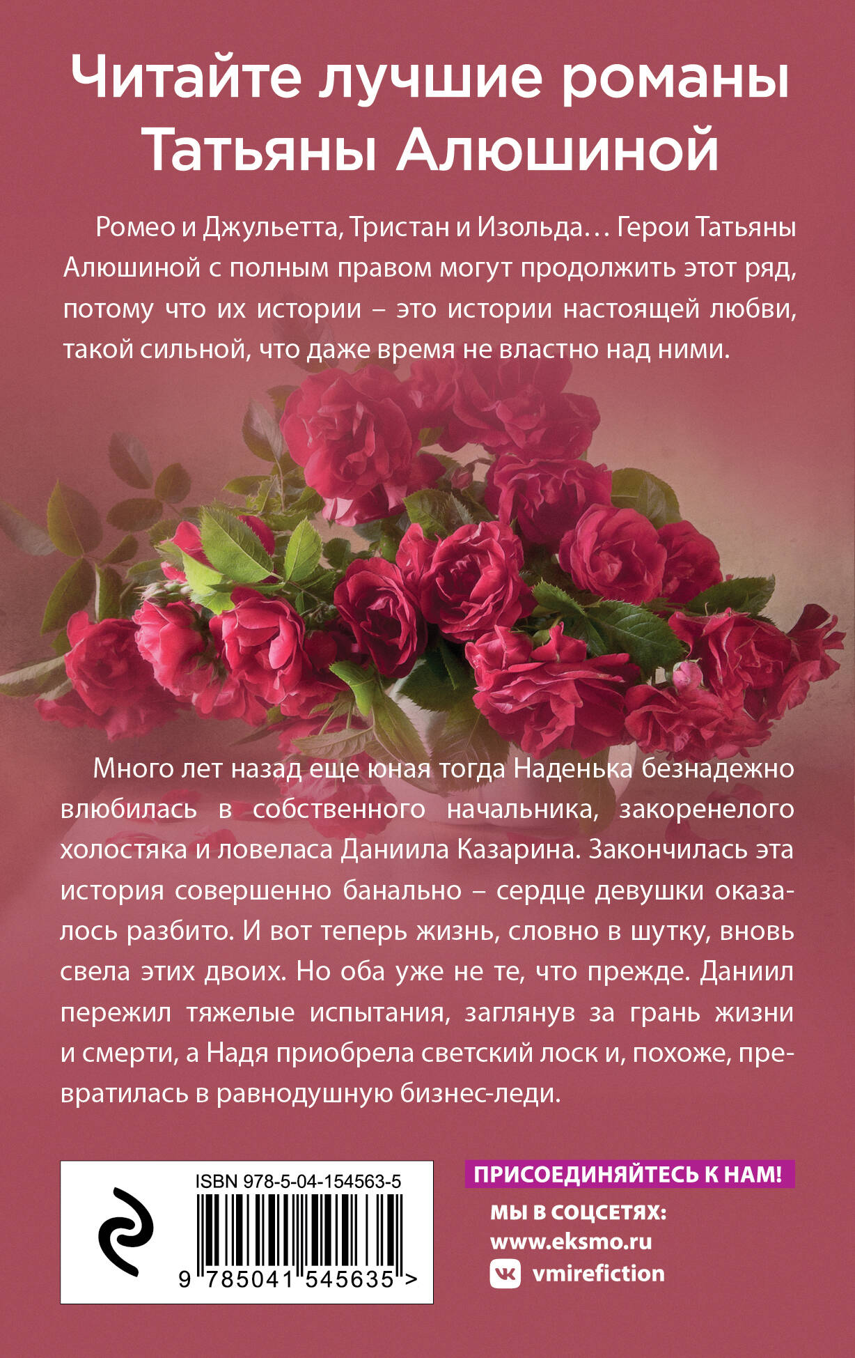 Романы Татьяны Алюшиной давно заслужили признание читательниц по всей стране, а суммарный тираж ее книг насчитывает более пяти миллионов! Захватывающие сюжеты, незабываемые чувства и подлинная страсть - ее книги читаются на одном дыхании и снова помогают поверить: счастье есть! Много лет назад еще юная тогда Наденька безнадежно влюбилась в собственного начальника, закоренелого холостяка и ловеласа Даниила Казарина. Закончилась эта история совершенно банально - сердце девушки оказалось разбито. И вот теперь жизнь, словно в шутку, вновь свела этих двоих. Но оба уже не те, что прежде. Даниил пережил тяжелые испытания, заглянув за грань жизни и смерти, а Надя приобрела светский лоск и, похоже, превратилась в равнодушную бизнес-леди.| Издательство | ООО "Издательство "Эксмо" |