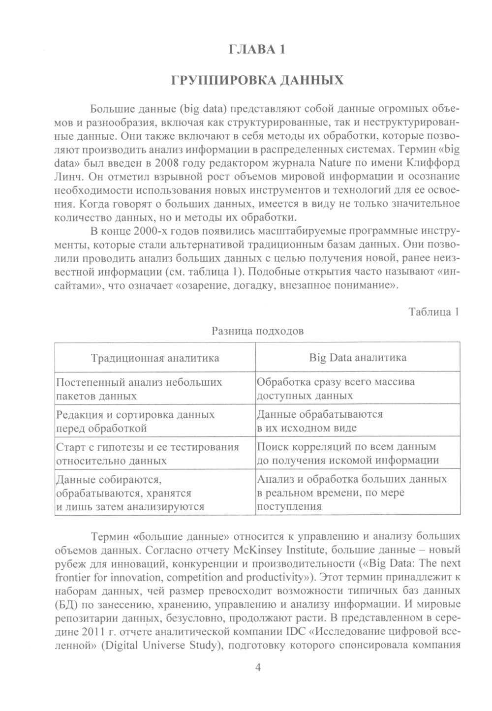Рассмотрены ключевые характеристики и технические особенности группировки данных, наглядно проиллюстрированы процессы систематизации, изложены виды анализа, методы и способы практического применения в разных сферах деятельности. Для обучающихся по направлениям подготовки 09.03.01 «Информатика и вычислительная техника», 09.03.02 «Информационные системы и технологии», 09.03.03 «Прикладная информатика», 09.02.03 «Программирование в компьютерных системах», 09.03.04 «Программная инженерия», 38.03.05 «Бизнес-информатика».