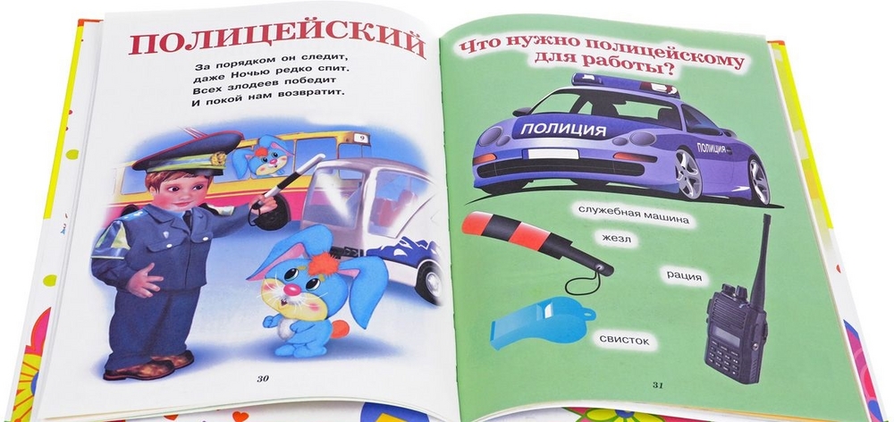 Наша книга в увлекательной форме на примере красочных иллюстраций познакомит ребенка с разными профессиями. Листая страницу за страницей, он узнает, чем занимаются строитель или пожарный, какими видами спорта удивляет нас тот или иной спортсмен, кто покоряет горные вершины, а кто достигает водных глубин, кто нас учит и лечит, развлекает и оберегает. Малыш без труда запомнит название каждой профессии, а также узнает, что необходимо для занятия каждым видом деятельности.