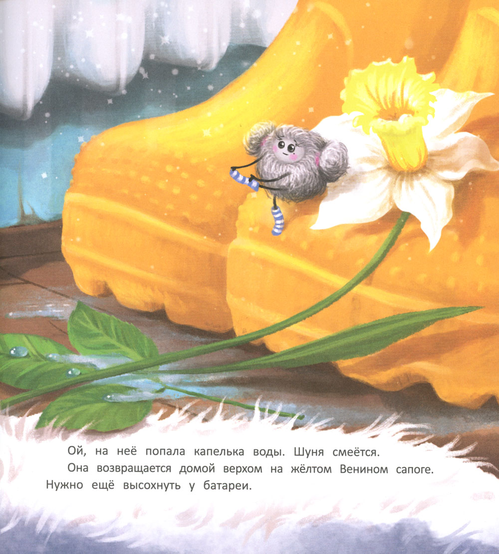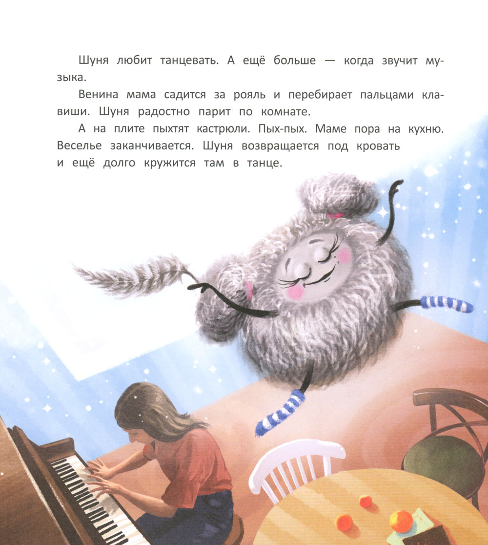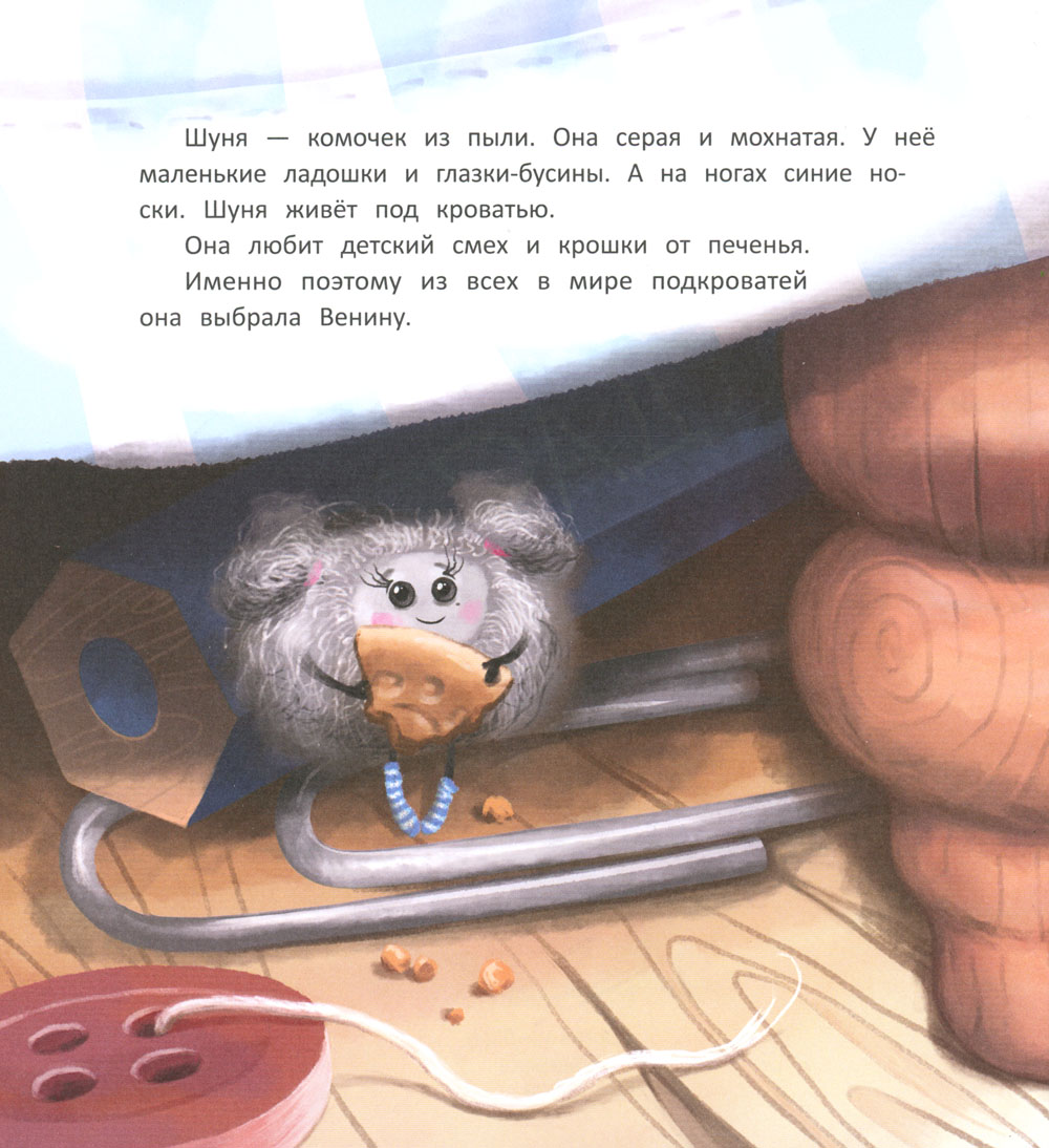 Шуня - комочек из пыли. Она любит танцевать и смотреть на снежинки. Шуня живёт под кроватью у Вени. На каждом шагу её ждут весёлые приключения: она отправляется на море, пробует торт и удирает от пылесоса. А ещё Шуня настоящая мечтательница!| Издательство | Феникс |