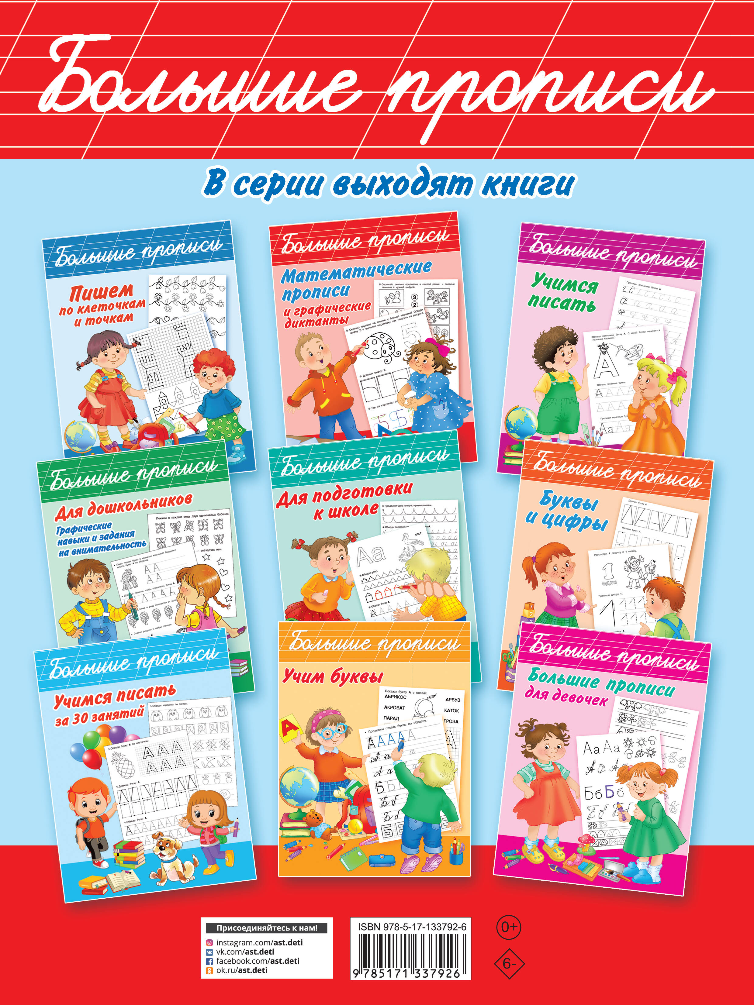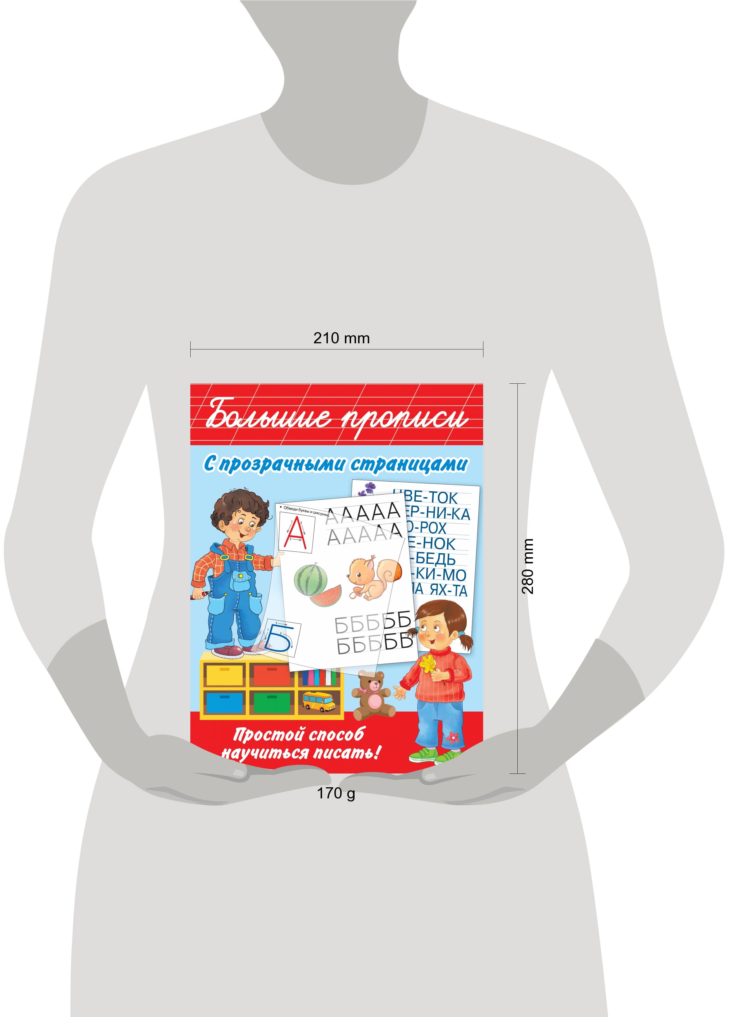 О чем эта книга Прописи с прозрачными страницами - развивающий сборник для знакомства с буквами алфавита и подготовки руки к письму. Кому эта книга будет интересна Пособие адресовано будущим первоклассникам, а также родителям, заинтересованным в успешной подготовке детей к школе. Занимаясь по сборнику графических упражнений, дошколята научатся писать письменные буквы. Каковы особенности этой книги • Сборник представляет собой рабочую тетрадь для формирования графических навыков: ребенок познакомится с азбукой и научится писать письменные буквы. • Это здорово - обводить буквы и картинки через прозрачные страницы. • Занимательные упражнения совершенствуют ловкость и точность движений, развивают мелкую моторику, внимание, память, вырабатывают усидчивость. • Замечательные прописи обязательно порадуют ребёнка и станут незаменимым помощником для подготовки будущего первоклассника к школе.| Издательство | Издательство "АСТ" |
