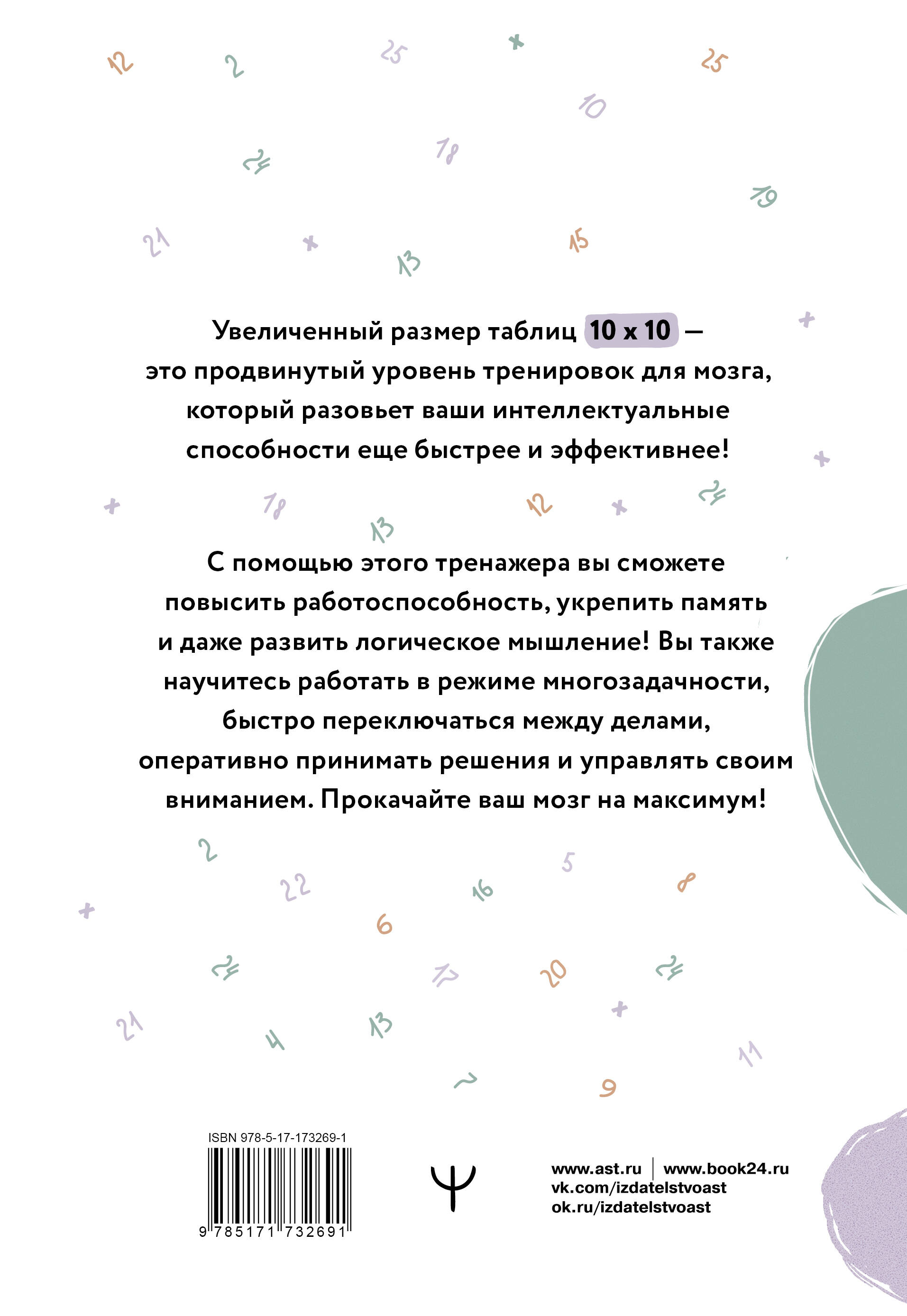 Аннотация: Большие таблицы Шульте 10х10. Интенсивный тренинг для мозга на 1 месяц. Отбивки: память, внимание, интеллект