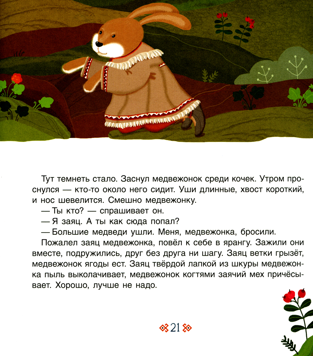 Из самобытных сказок народов Севера дети узнают о том, что смелым может быть даже самый маленький мышонок, свой дом всегда лучше соседского, каким бы крошечным он ни был, а заносчивость ещё никому не принесла добра.