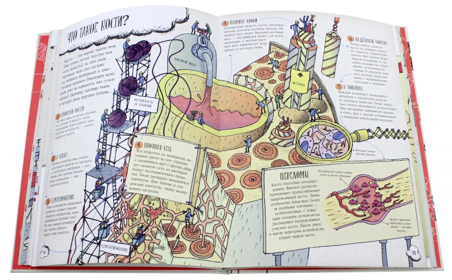 В этой книге подробно, наглядно и невероятно увлекательно рассказано о том, как устроен и как работает человеческий организм. Из чего состоит наше тело, что такое клетки, ткани и органы? Как работают мышцы, нервы и гормоны? Для чего нужны вода и еда и что с ними происходит в организме человека? Почему мы болеем и как выздоравливаем, как распознаем запахи и вкусы? Как мы думаем? Почему мы похожи на своих родителей? Подробный ответ на каждый вопрос разбит на удобные блоки и проиллюстрирован так, что становится ясно не только как устроено человеческое тело, но и как именно происходят в нем все жизненные процессы. Современная и оригинальная по замыслу и исполнению научно-популярная книга написана известным британским писателем Джоном Фарндоном, лауреатом книжных премий в США и Великобритании.