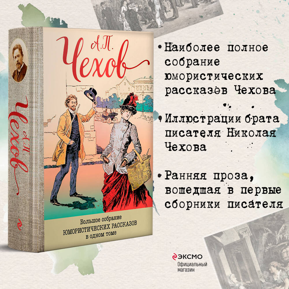 В издании не только наиболее полно раскрыт юмористический талант А.П. Чехова, но и представлены иллюстрации, которые для юмористических журналов были выполнены братом писателя Н.П. Чеховым, в том числе и к рассказам А.П. Чехова.| Издательство | ООО "Издательство "Эксмо" |