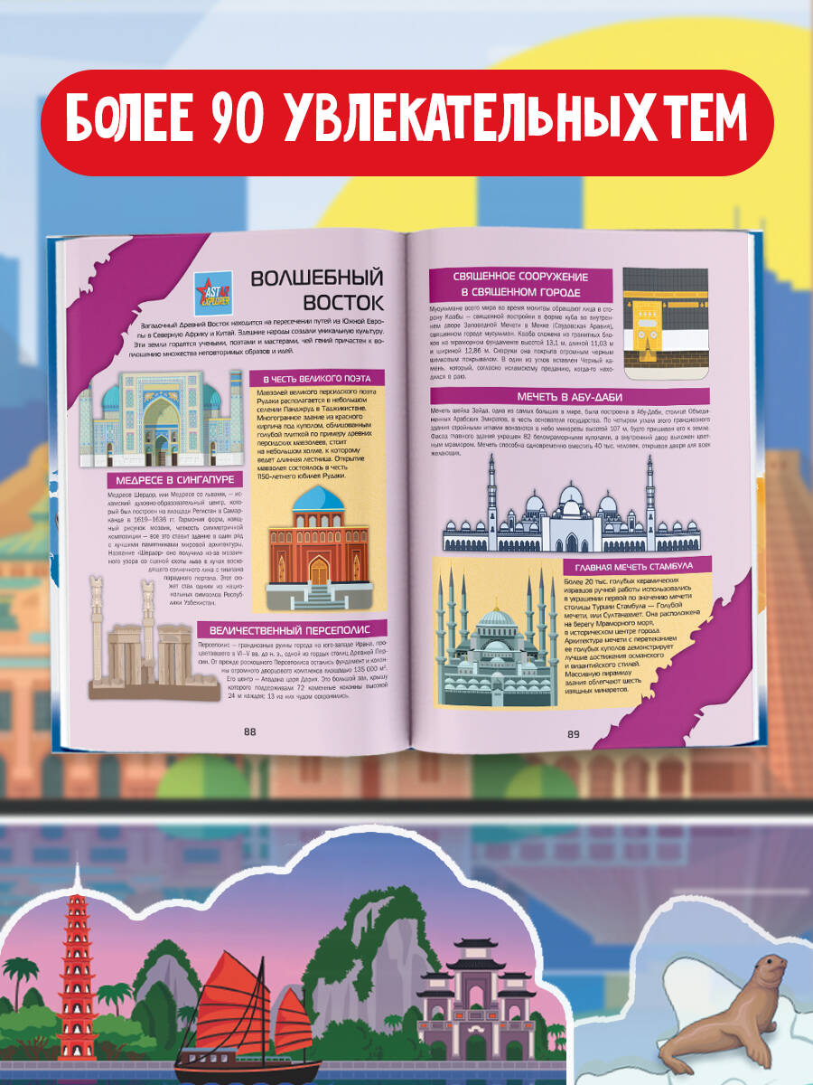 Большой 4D-атлас мира станет вашим гидом в захватывающем путешествии по всей планете. Он рассказывает о Мировом океане и шести континентах, их географии, природных особенностях, животном и растительном мире, интересных традициях и обычаях самых разных народов. Вы познакомитесь с многочисленными странами и их уникальными достопримечательностями, включая исторические памятники, национальные парки и места, богатые природными ресурсами. Книга расскажет о знаменитых городах и величественных сооружениях мира. А новейшие 4D-технологии совершенно изменят восприятие прочитанного, позволяя изучать географию нашей планеты в интерактивном режиме. Прогуляться среди таинственных статуй моаи на острове Пасхи, заглянуть в жерло действующего вулкана, исследовать животный мир тропических лесов Амазонии, понаблюдать за окрестностями в пределах самого большого на Земле живого организма - Большого Барьерного рифа - это и многое другое можно сделать с помощью дополненной реальности, рассмотреть в объеме, движении и различном масштабе. 4D-технологии, звуковые эффекты и нестандартно изложенная познавательная информация откроют перед вами удивительные возможности для изучения и понимания многообразия окружающего мира! Для среднего и старшего школьного возраста.