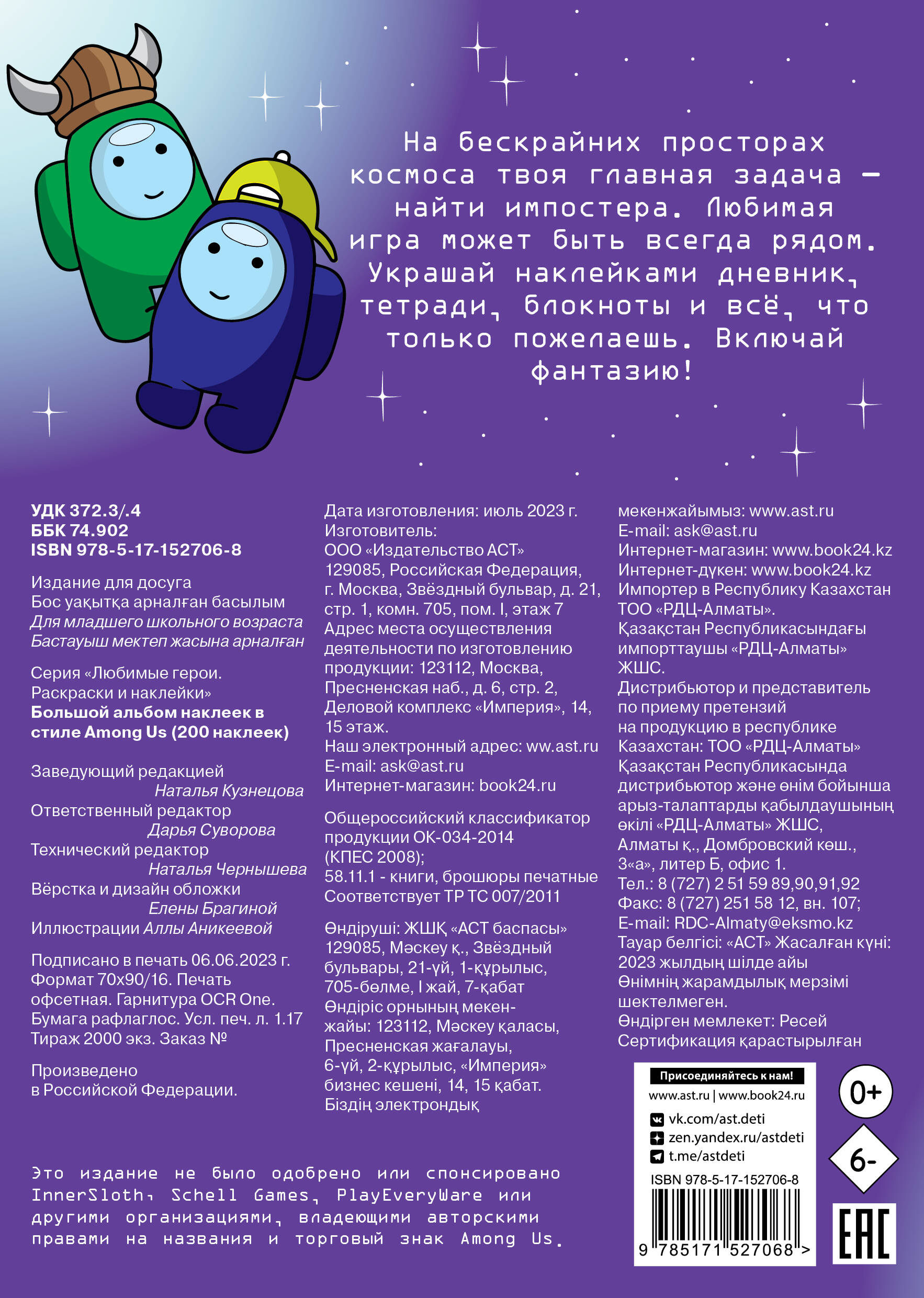 На бескрайних просторах космоса твоя главная задача - найти импостера. Любимая игра может быть всегда рядом. Украшай наклейками дневник, тетради, блокноты и всё, что только пожелаешь. Включай фантазию!| Издательство | ИЗДАТЕЛЬСТВО "АСТ" |