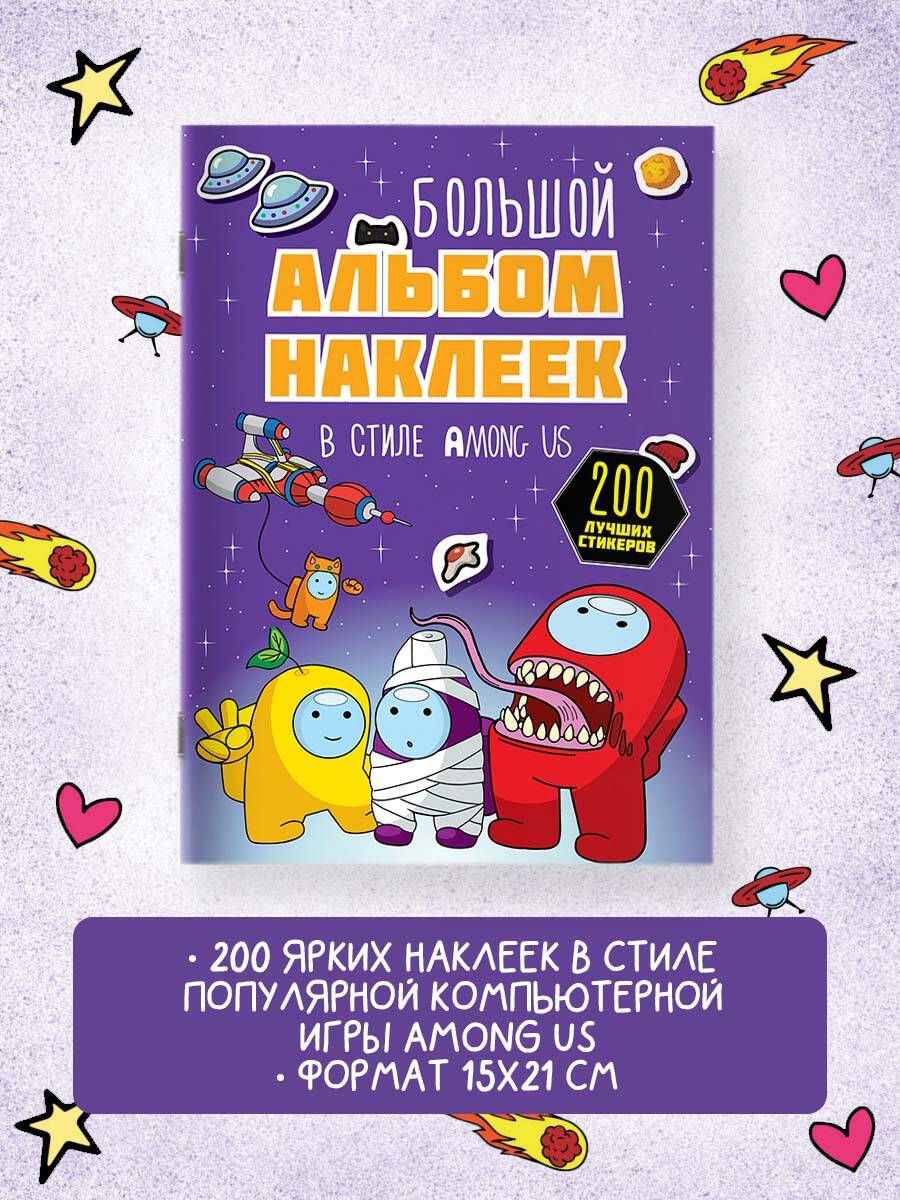 Большой альбом наклеек в стиле Among Us (200 наклеек)