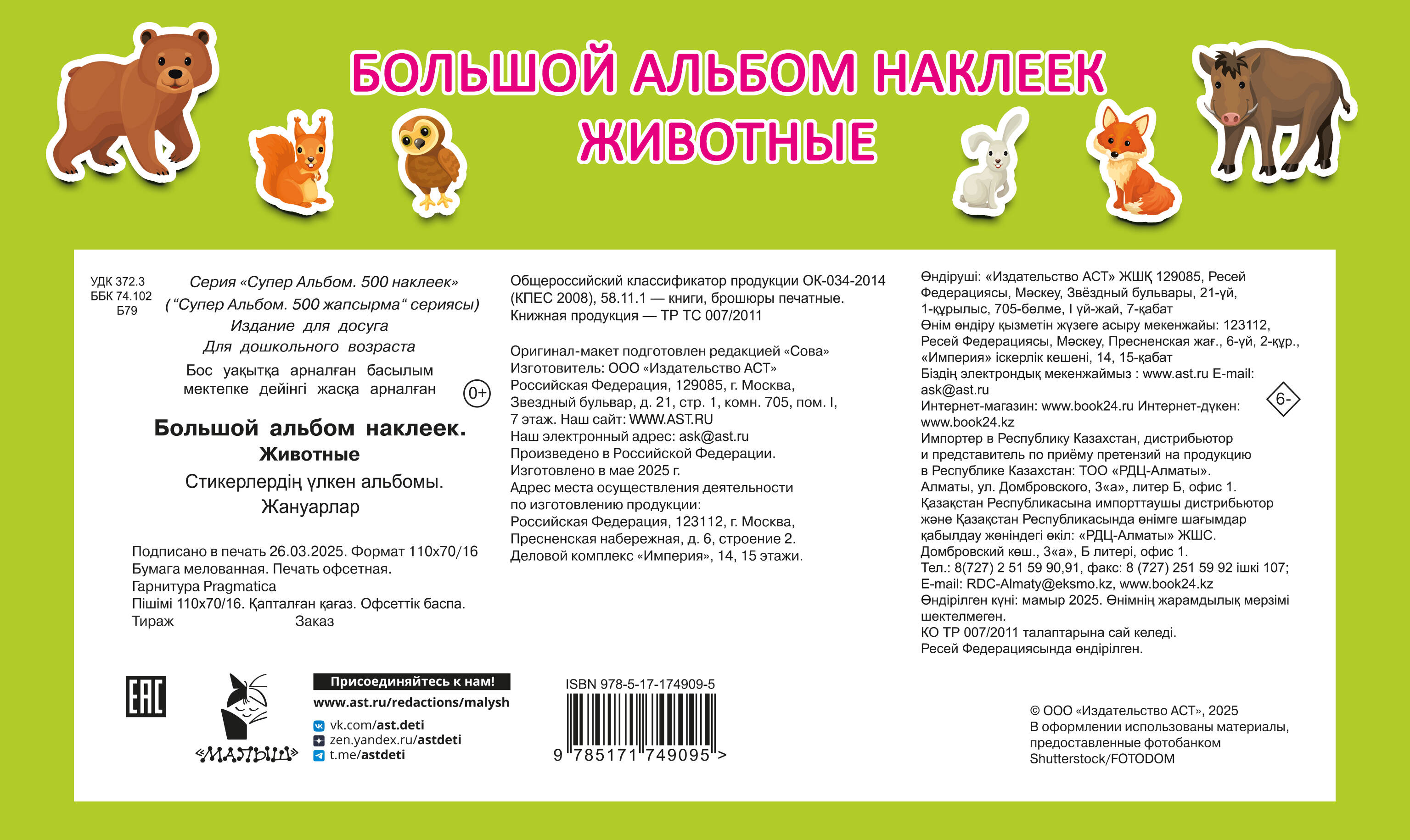 Большой альбом наклеек. Животные