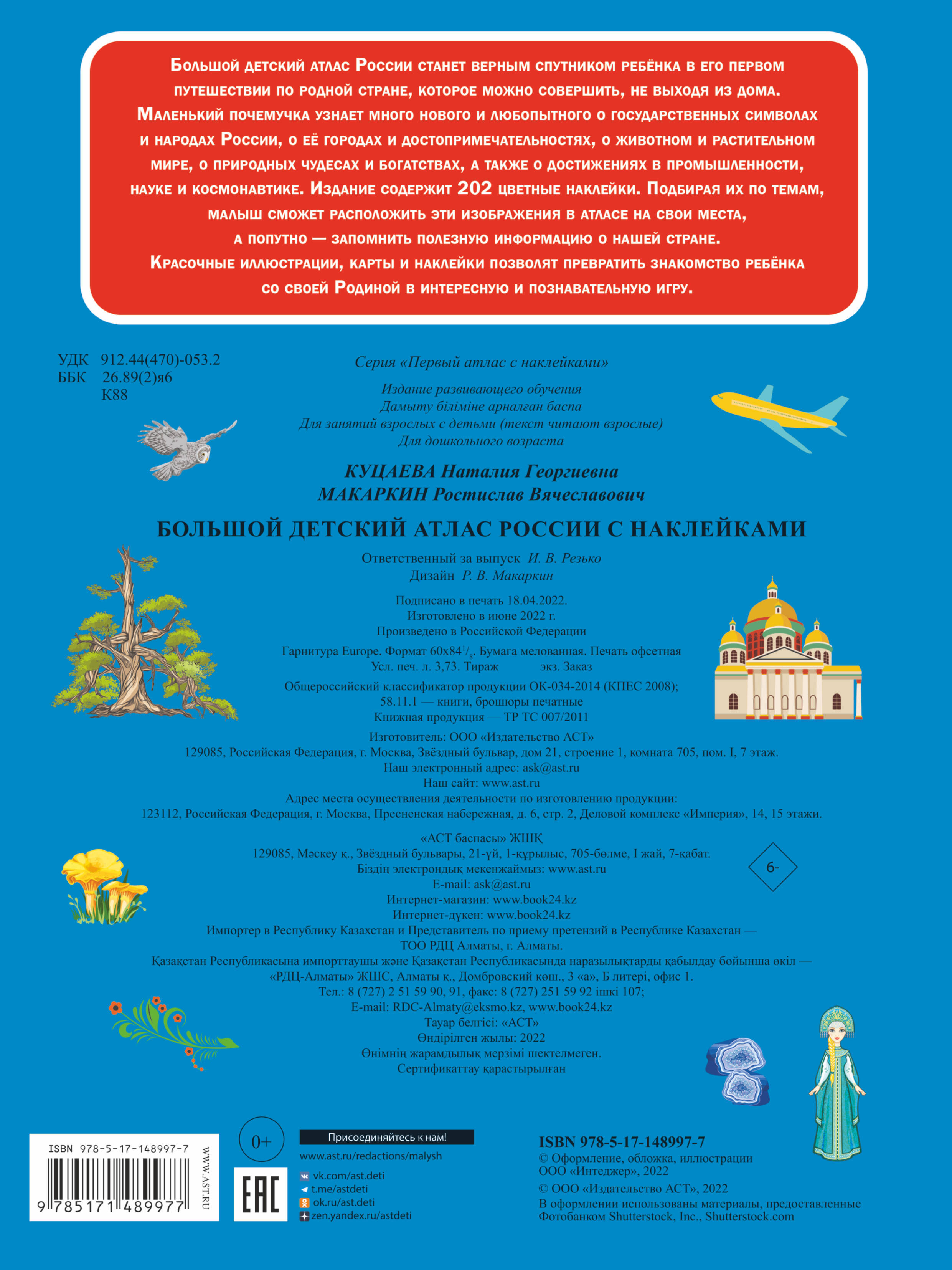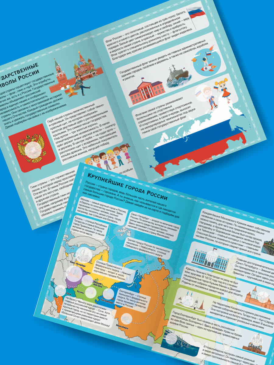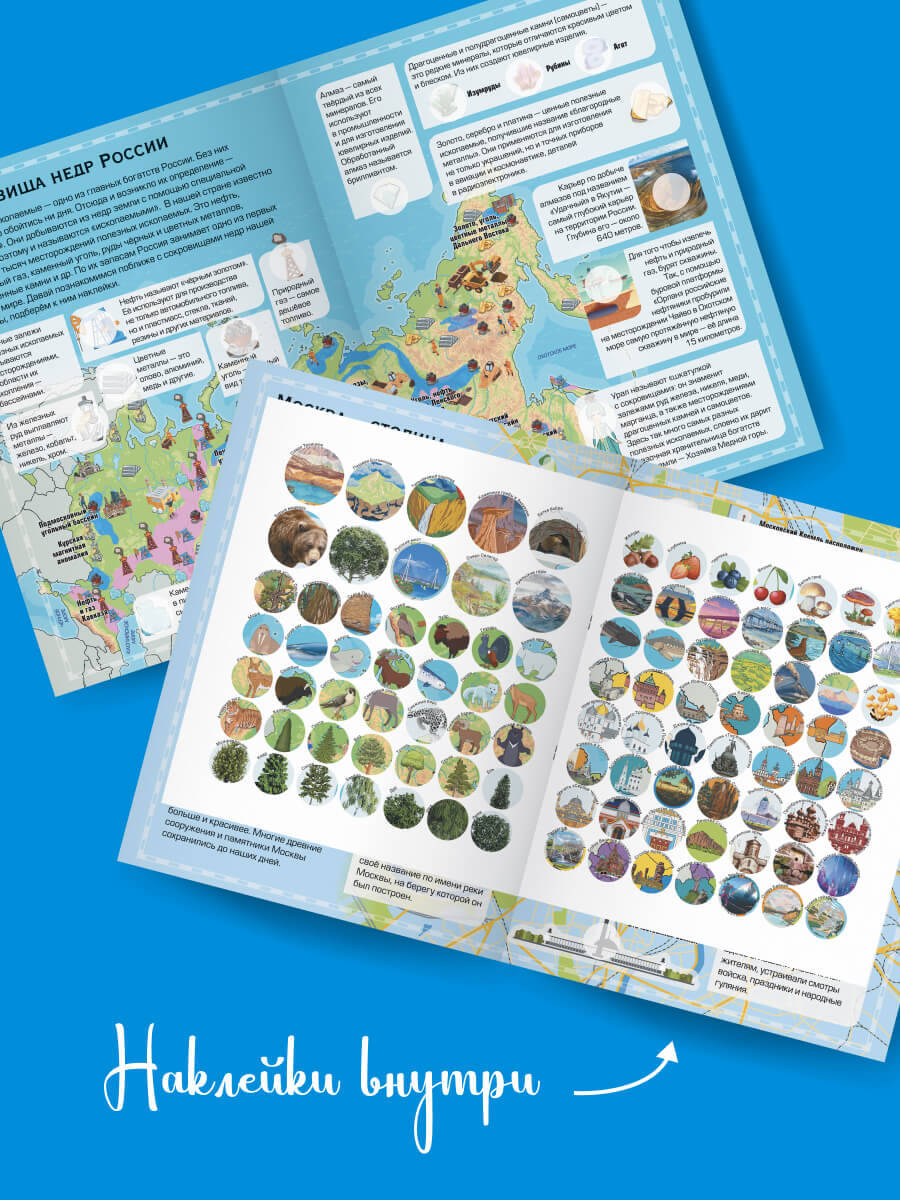 Аннотация: Большой детский атлас России с наклейками