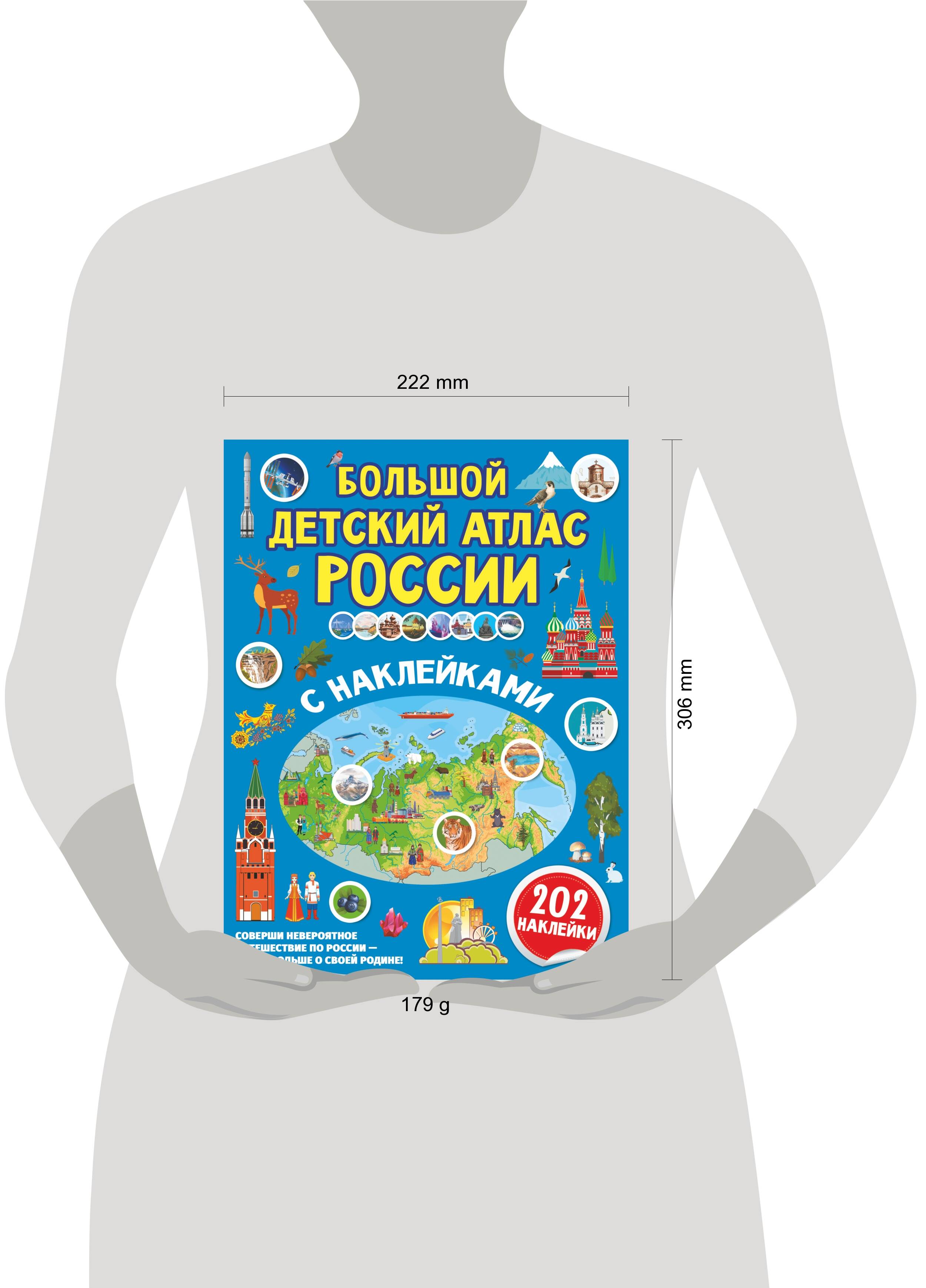 Большой детский атлас России с наклейками поможет ребенку непринужденно, в процессе игры запомнить важную информацию о государственных символах и народах России, о ее главных городах, о животном и растительном мире, о природных чудесах и богатствах, о достижениях в промышленности, науке и космонавтике. Также малыш выучит даты главных праздников, запомнит, сколько в России городов-героев, как они называются и чем прославлены, познакомится с достопримечательностями столицы нашего государства Москвы, а также запомнит, как выглядят и называются самые известные и знаменитые кремли, храмы, музеи, памятники и заповедники страны. 5 причин купить: 1. Из двух предложенных похожих изданий - с наклейками и без - маленький читатель всегда выберет книгу с наклейками, ведь детям доставляет очень большое удовольствие сам процесс подбора наклеек, от этого не откажется ни один ребенок! 2. Занятия с таким изданием побуждают ребенка учиться читать, потому что все, что связано с названием и тематикой наклейки, вызывает особенный интерес у большинства детей. 3. Ребенок будет стремиться задавать вопросы, заинтересовавшись темами атласа, что значительно расширит его кругозор. 4. Занятия с наклейками, по оценке детских психологов, положительно влияют на когнитивное развитие ребенка. В игре с наклейками он совершенствует зрительную память, мелкую моторику, внимание и усидчивость. 5. Малыш может знакомиться с атласом как самостоятельно, так и вместе со взрослыми, что станет прекрасным видом проведения совместного досуга. При этом данное занятие настолько увлекательное и радостное, что малыш его не бросит на полпути.| Издательство | АСТ |