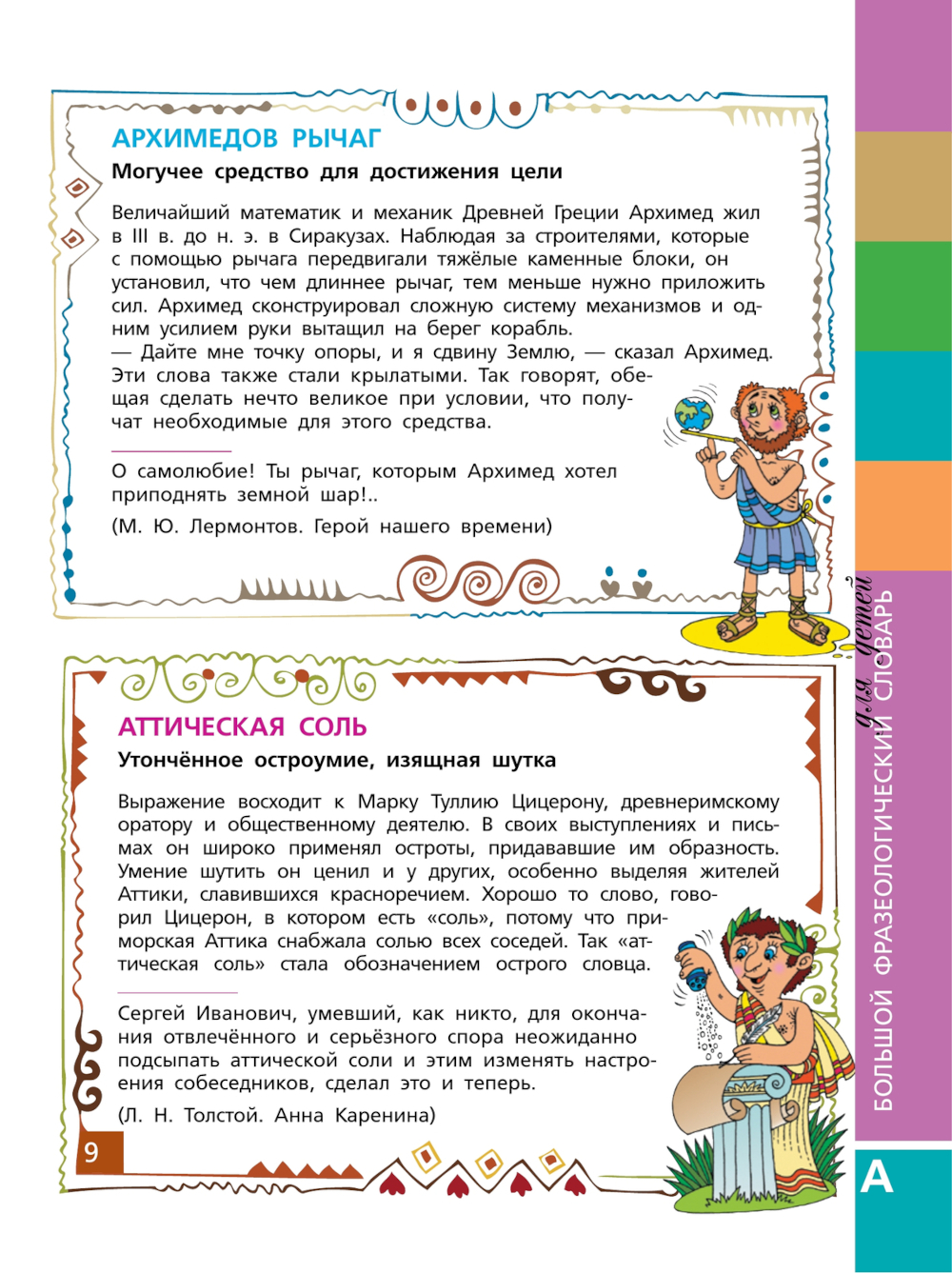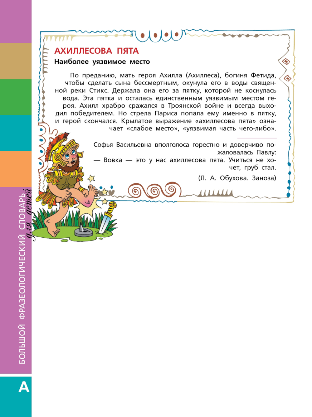 Данный словарь содержит более 400 идиом - фразеологических оборотов, смысл которых не может быть понят из значений входящих в них слов. Каждый фразеологизм содержит толкование значения, историю происхождения, пример использования в литературе, а также дополнен рисунком, наглядно отражающим его смысл, что очень важно для более лёгкого освоения такого сложного материала, как фразеология русского языка. Словарь будет интересен и полезен детям всех возрастов, а также их родителям.
