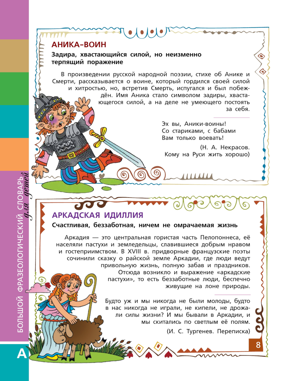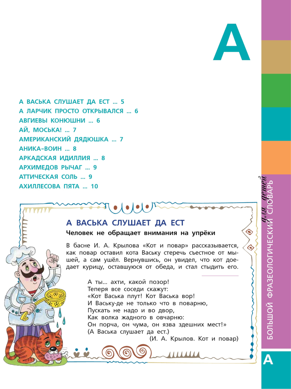 Данный словарь содержит более 400 идиом - фразеологических оборотов, смысл которых не может быть понят из значений входящих в них слов. Каждый фразеологизм содержит толкование значения, историю происхождения, пример использования в литературе, а также дополнен рисунком, наглядно отражающим его смысл, что очень важно для более лёгкого освоения такого сложного материала, как фразеология русского языка. Словарь будет интересен и полезен детям всех возрастов, а также их родителям.| Издательство | Просвещение |