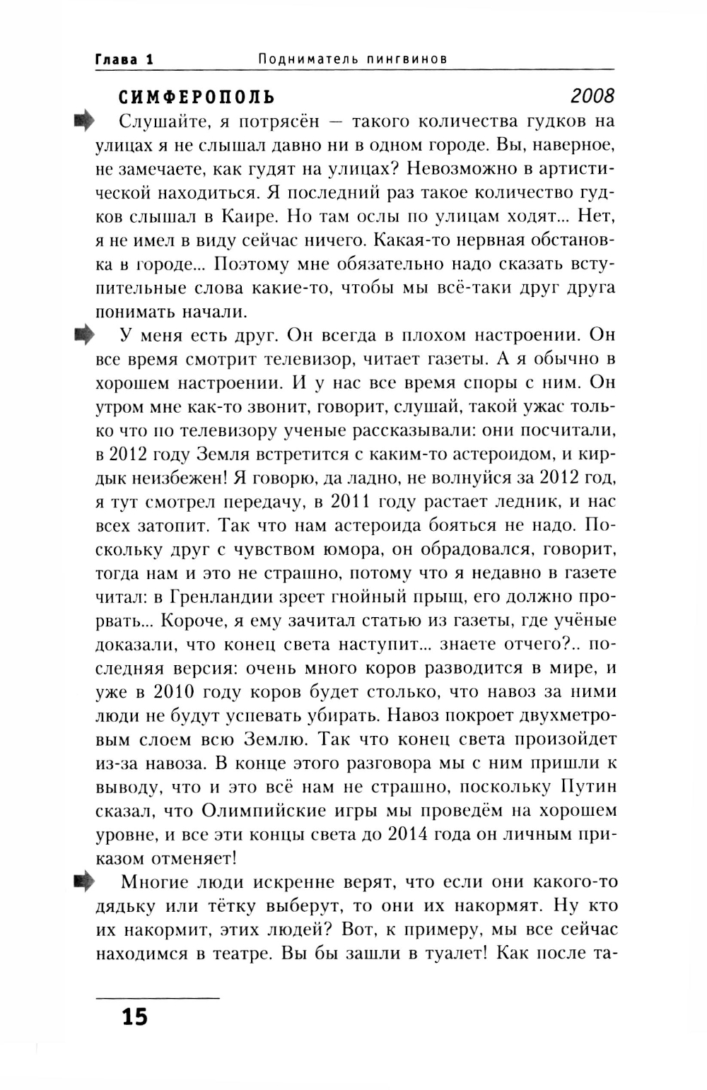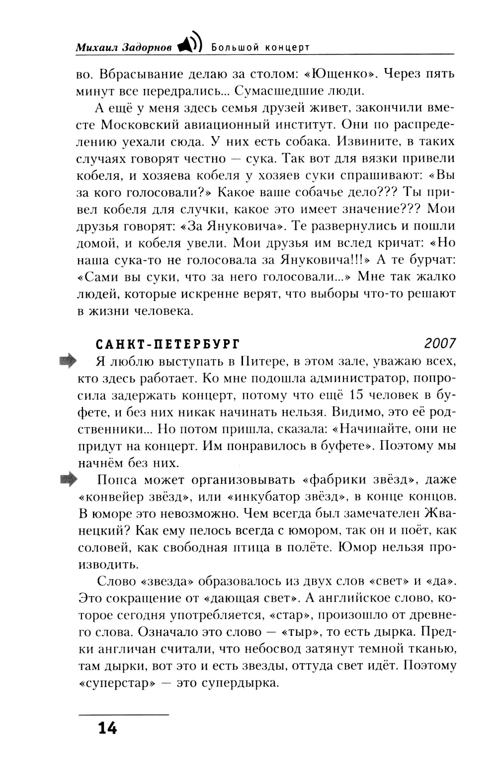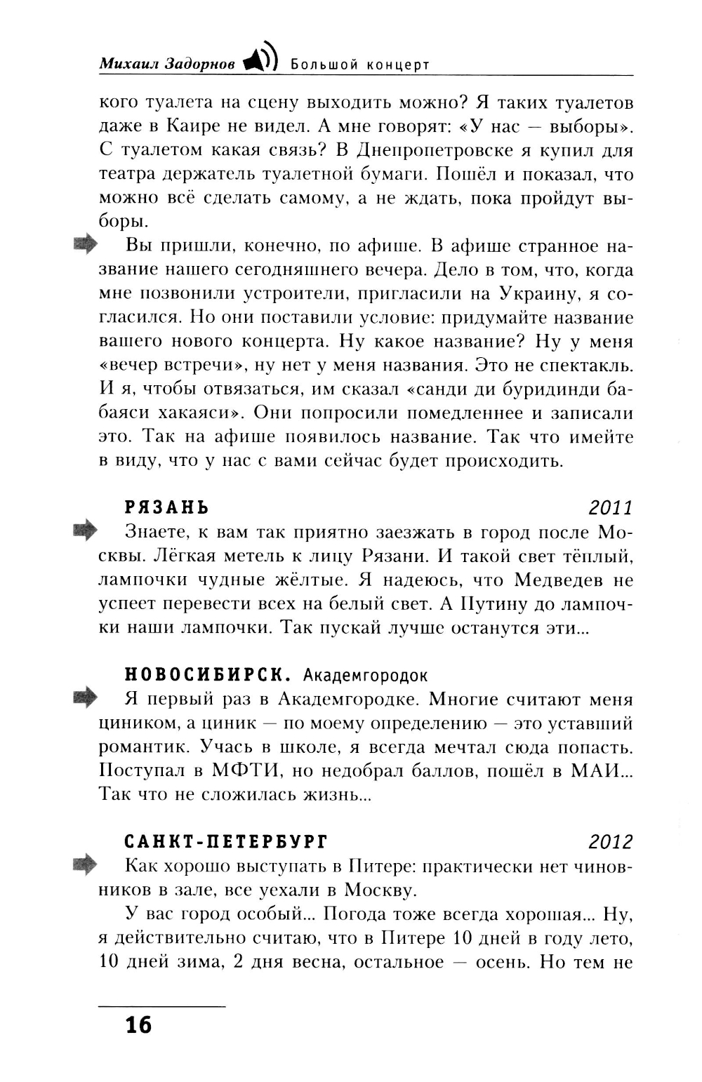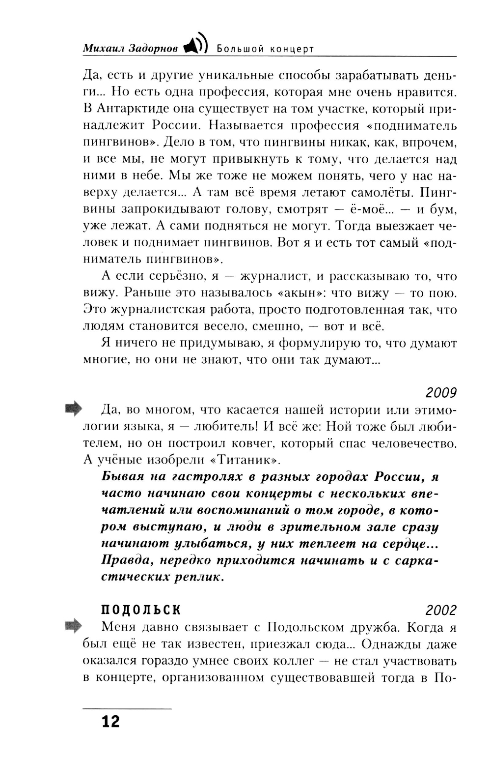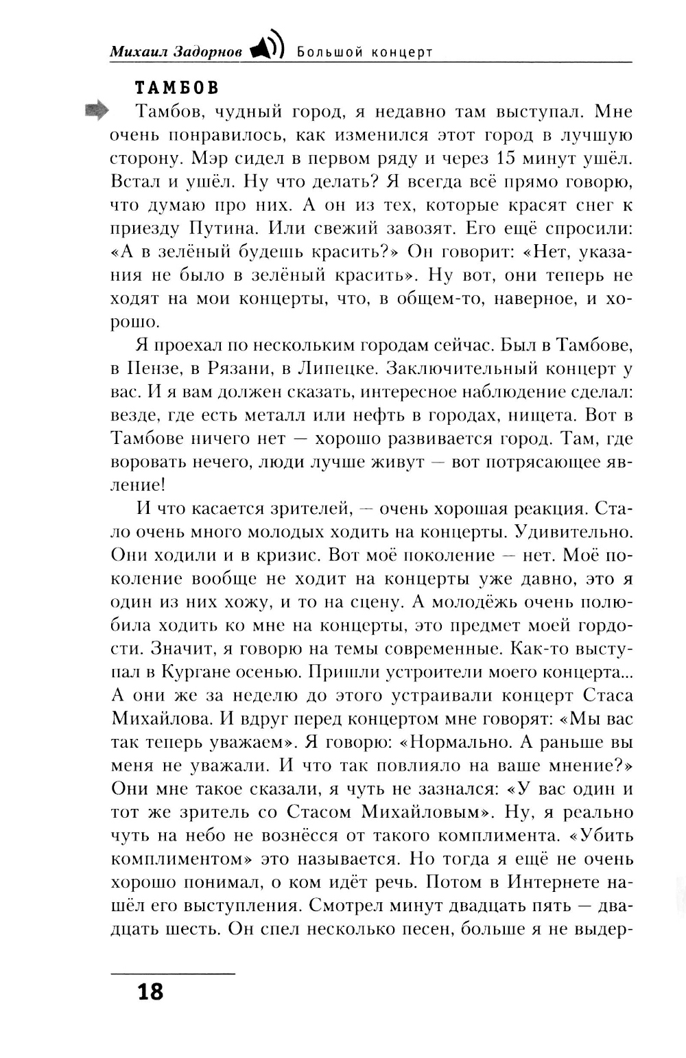 Не всем в этой жизни посчастливилось попасть на концерт Задорнова. Почувствовать на себе, как действует магия смеха, которой он мгновенно, начиная со вступительных слов, окутывает зал. Поэтому мы предлагаем вам книгу, составленную из НИКОГДА НЕ ПУБЛИКОВАВШИХСЯ частей архива концертов Михаила Николаевича. Взяв в руки это издание, вы побываете на Одном Большом Концерте замечательного и любимого всеми писателя и сатирика. Книга выстроена по тому же принципу, что и многие концерты автора. Здесь впервые вы прочтёте наиболее полное собрание шуток, входящих в разделы концертов «Только наши» и «Знаете ли вы, что...», вспомните шутки «лихих девяностых», над которыми и теперь смеются дети, рождённые уже в иную эпоху. Но самое главное - в этой книге мы надеемся сохранить тот заряд энергии и творческого отношения к жизни, который каждый зритель может получить, только побывав на концерте Михаила Задорнова.| Издательство | Центрполиграф |