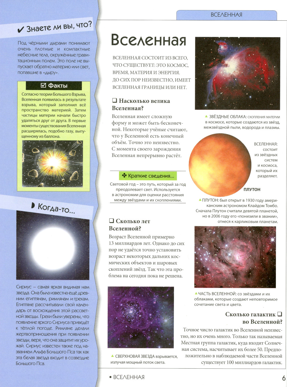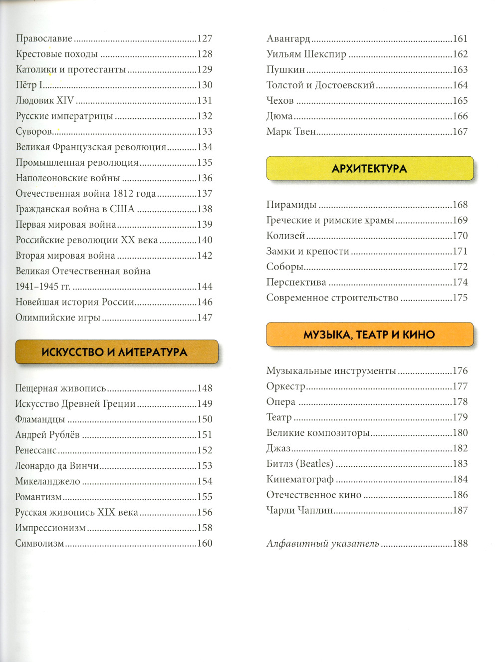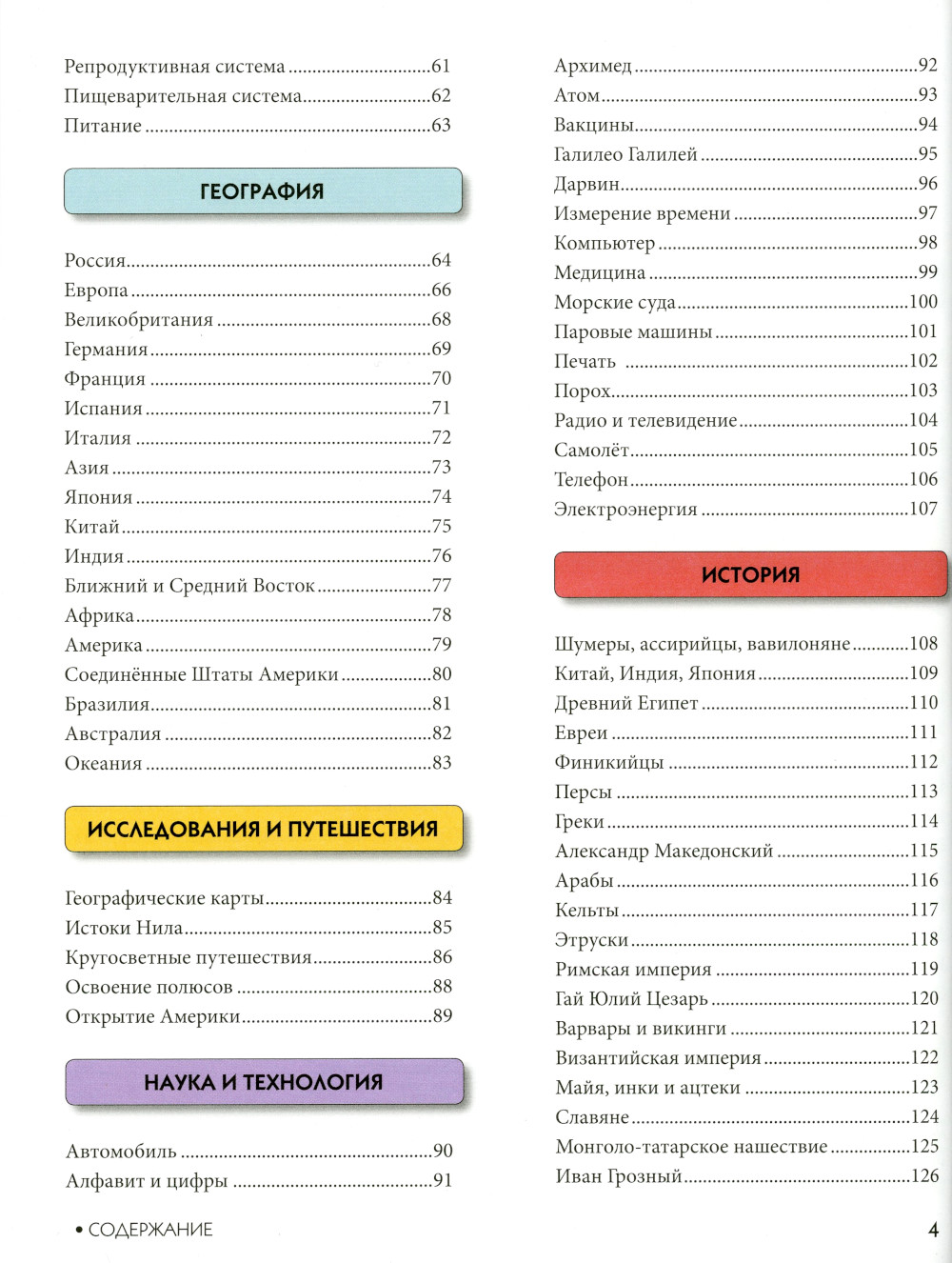 Ты растёшь, и тебе хочется знать больше: как устроена Вселенная, как живут люди в других странах, что происходило в древние времена на Земле. В этой книге мы постарались в краткой и увлекательной форме дать ответы на интересующие тебя вопросы. Листая страницы нашей энциклопедии, ты сможешь узнать, кто и как изобрёл привычные для тебя вещи, как совершались великие открытия, чем прославились знаменитые правители и люди искусства. Ты увидишь, какие необычные и загадочные существа обитают на нашей планете, и узнаешь, как работает человеческий организм. Вперёд, к новым знаниям и открытиям!