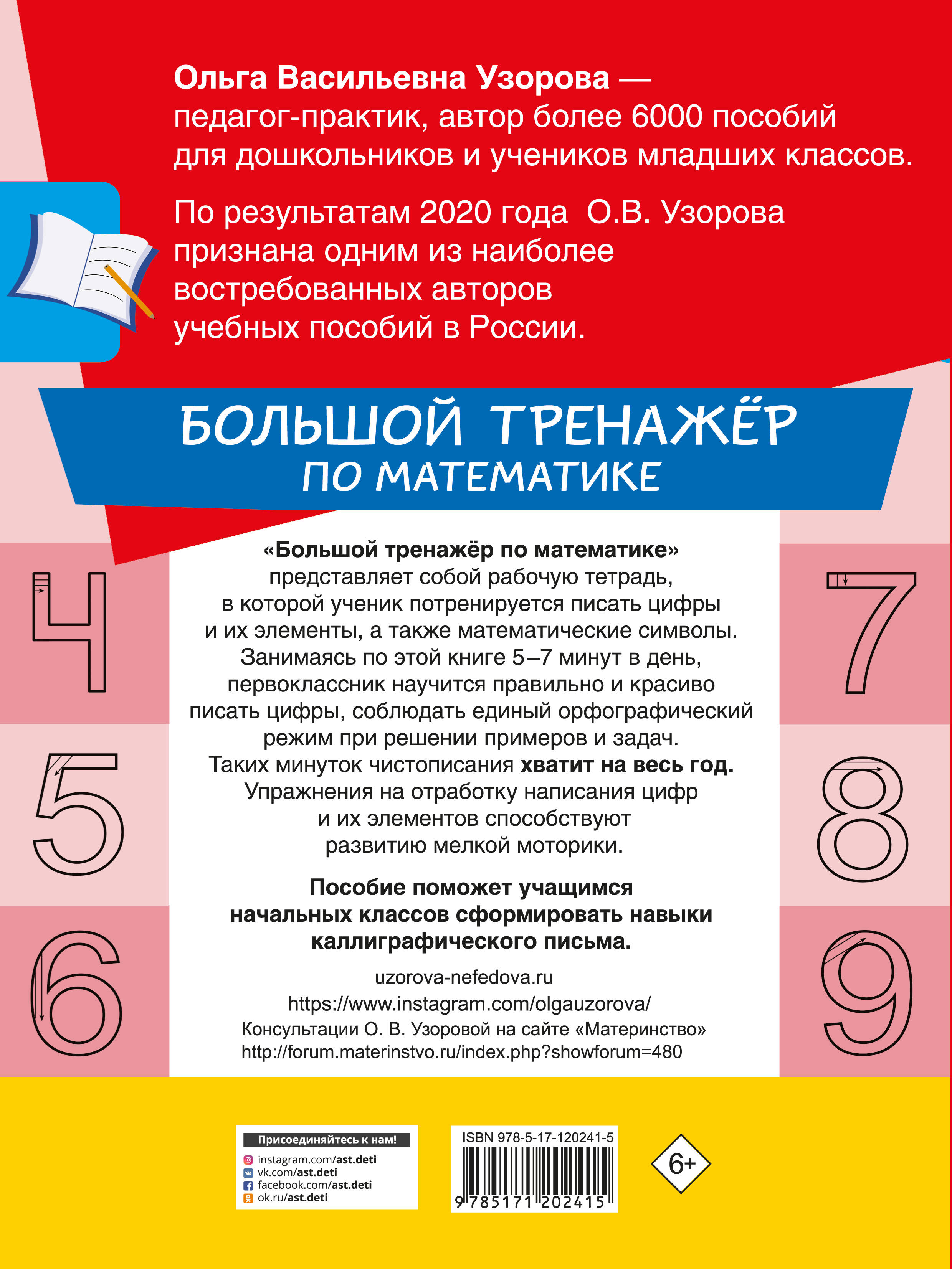 Учебное пособие известных педагогов-практиков О. В. Узоровой и Е. А. Нефедовой поможет первоклассникам научиться правильно писать цифры, соблюдать единые правила записи при решении примеров и задач.| Издательство | Издательство "АСТ" |
